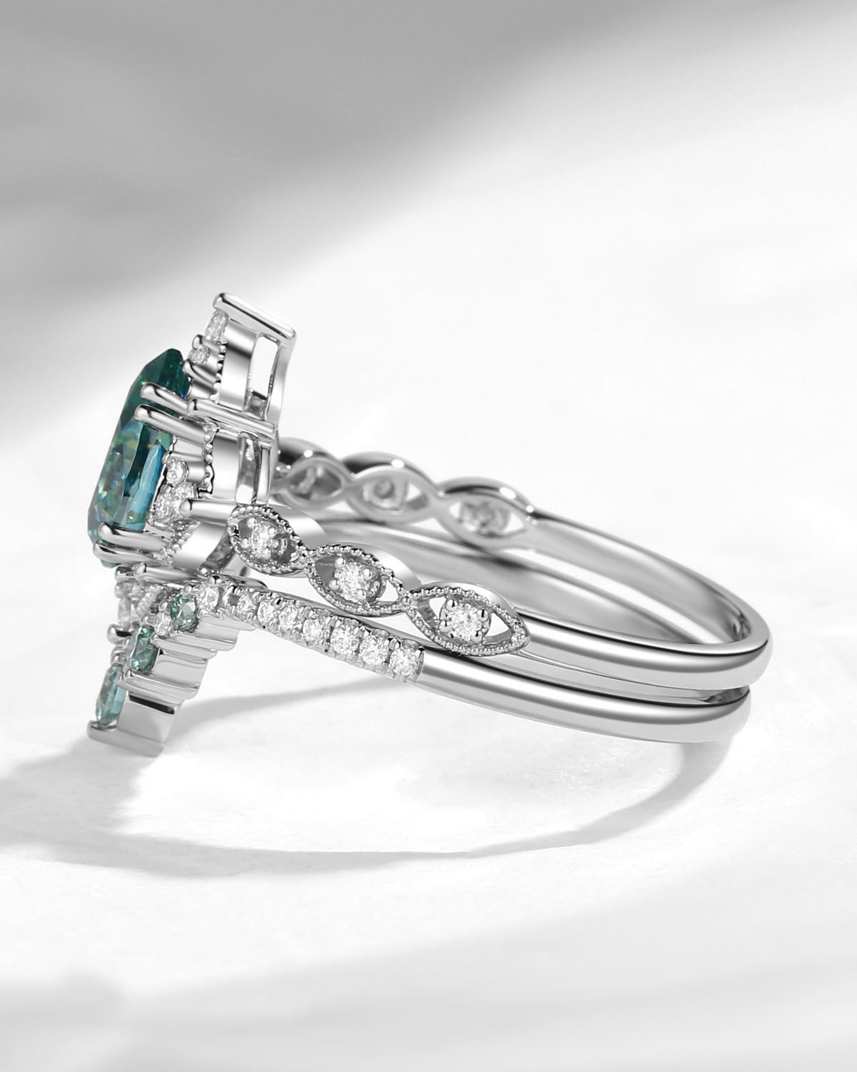 1.5ct Pear Shaped Lab Sapphire Engagement Ring Set 2pcs - Evelyn