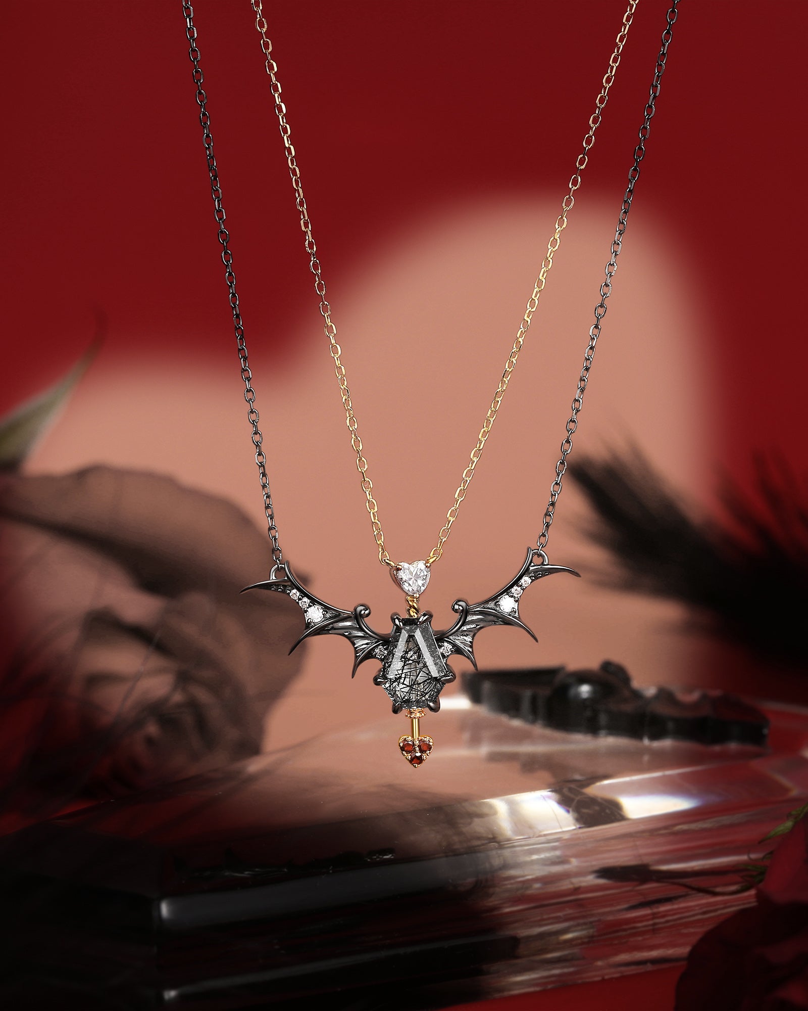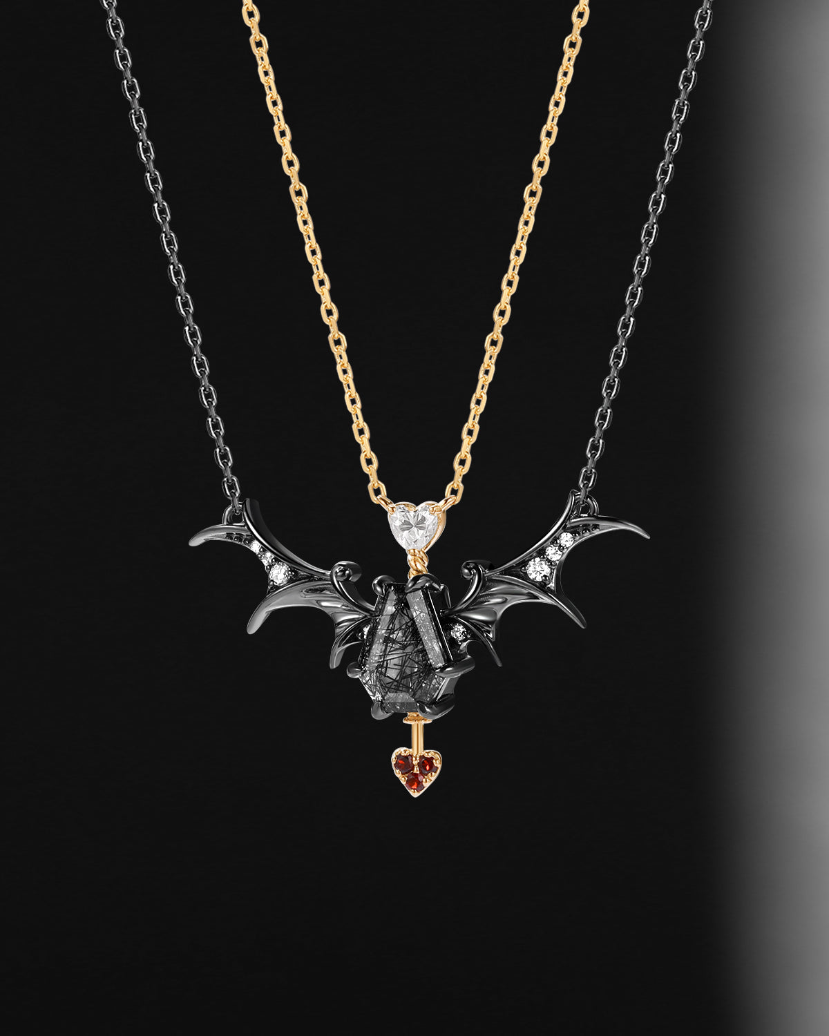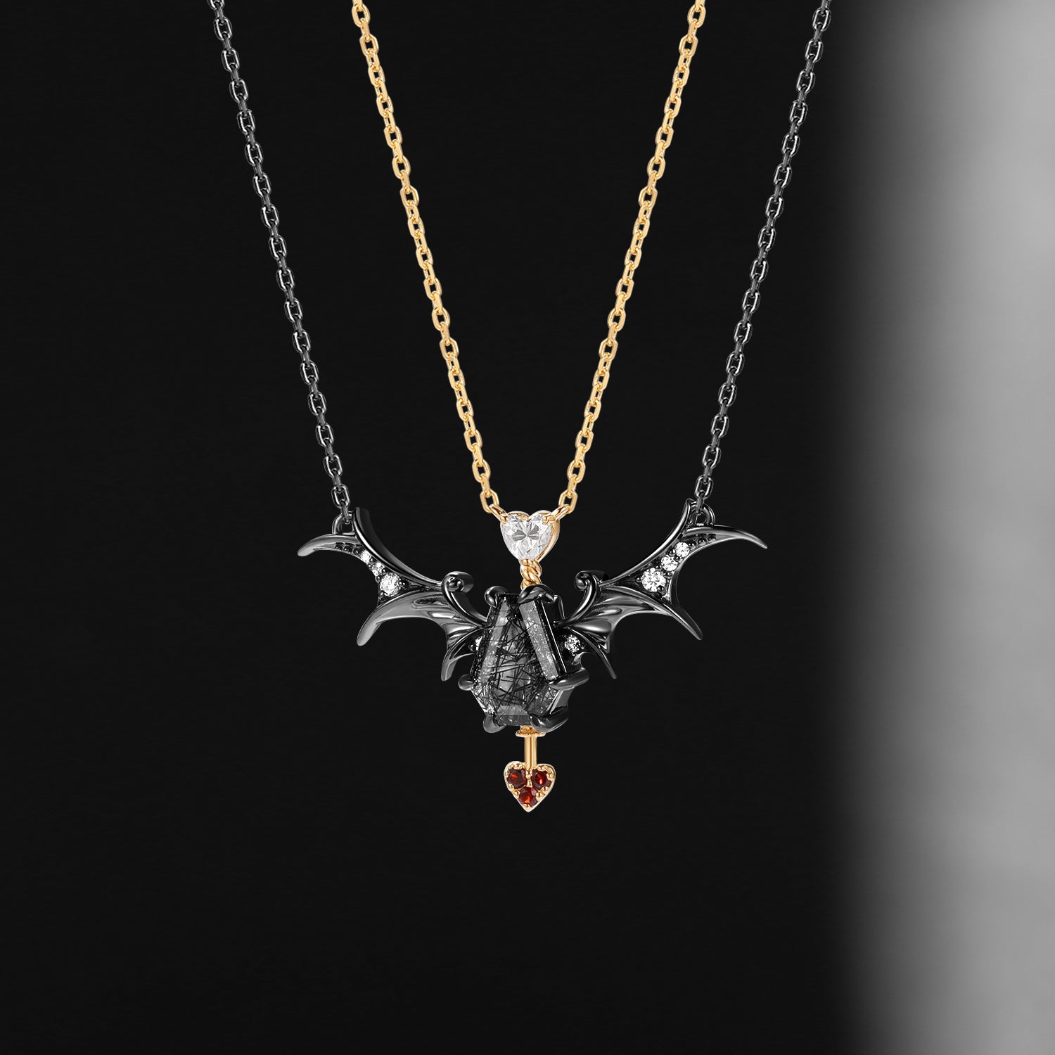 Bat Wing Garnet Heart Cut Necklace - Fly To Love