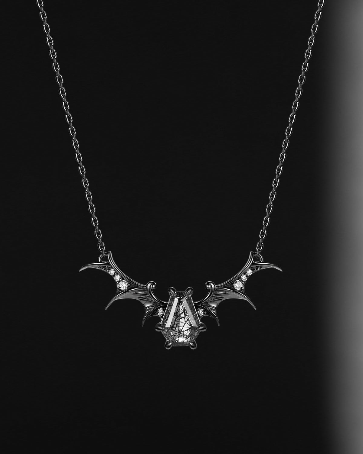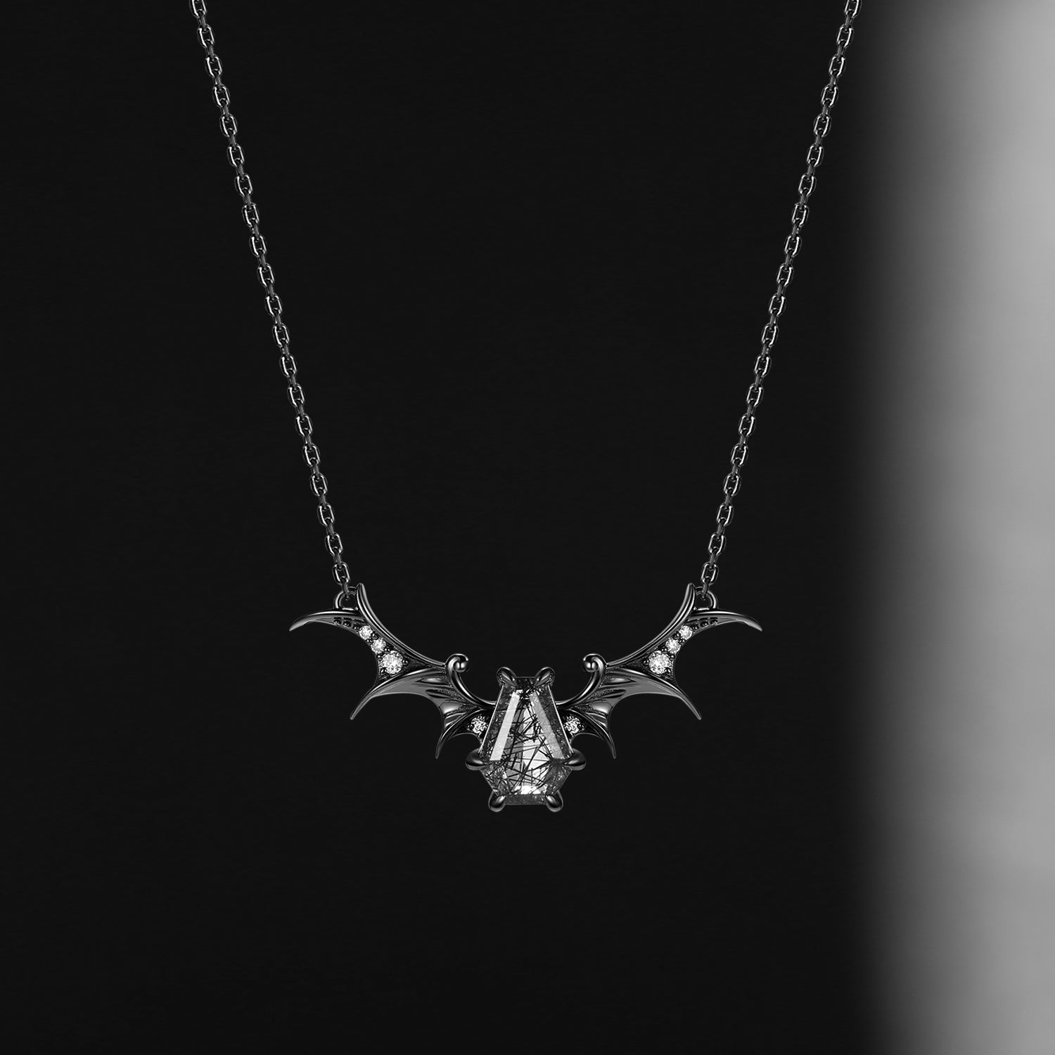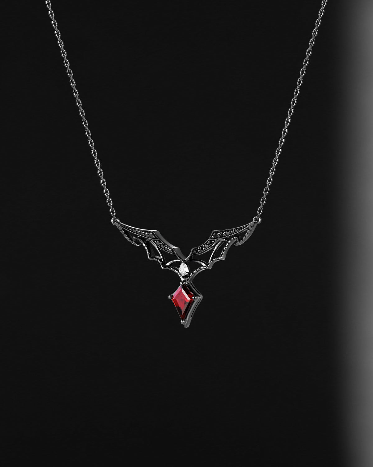 Unique Gothic Kite Cut Garnet Dark Elegance Bat Wing Necklace