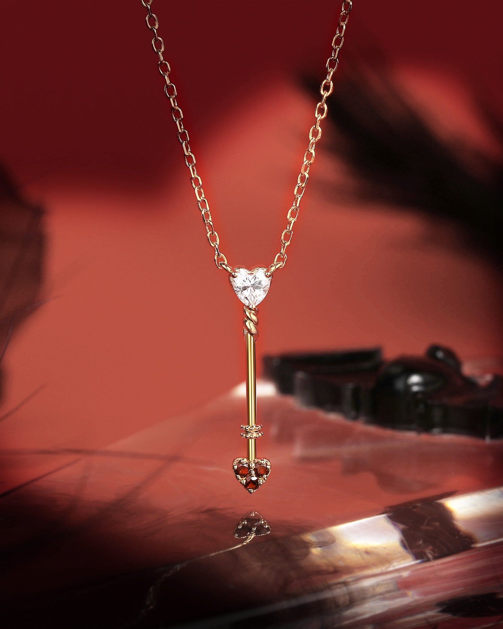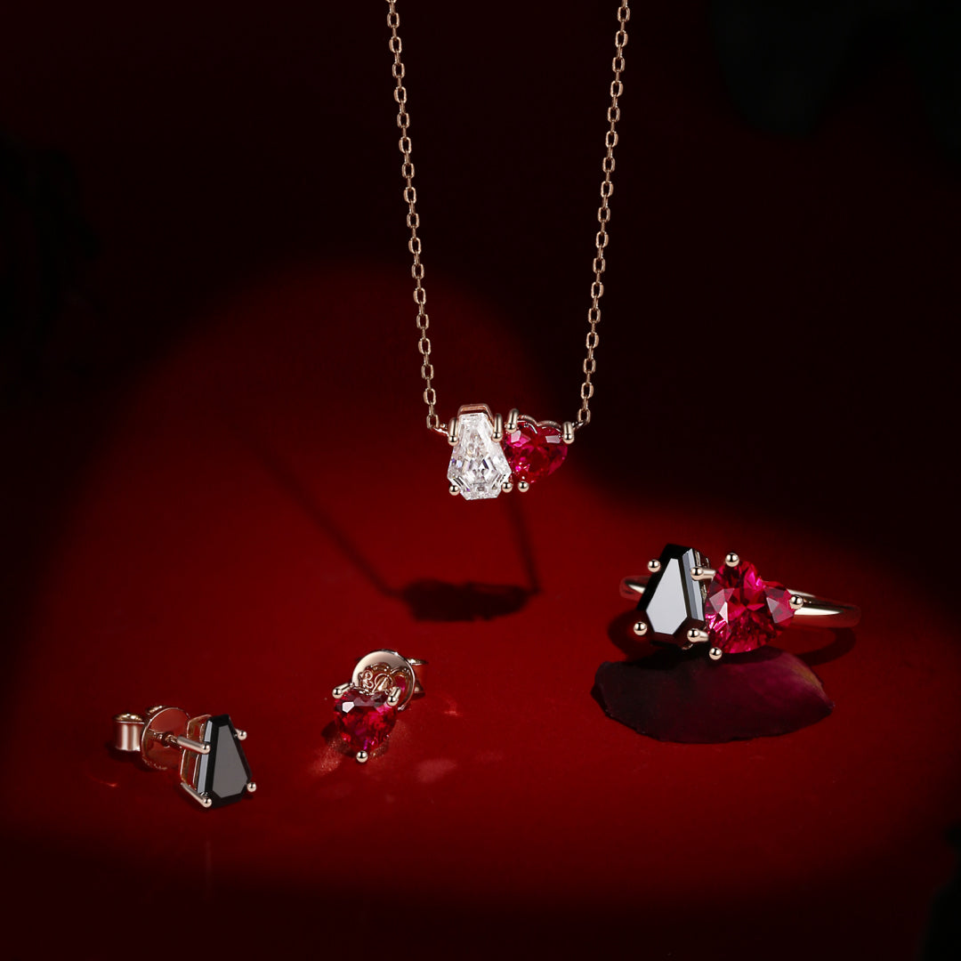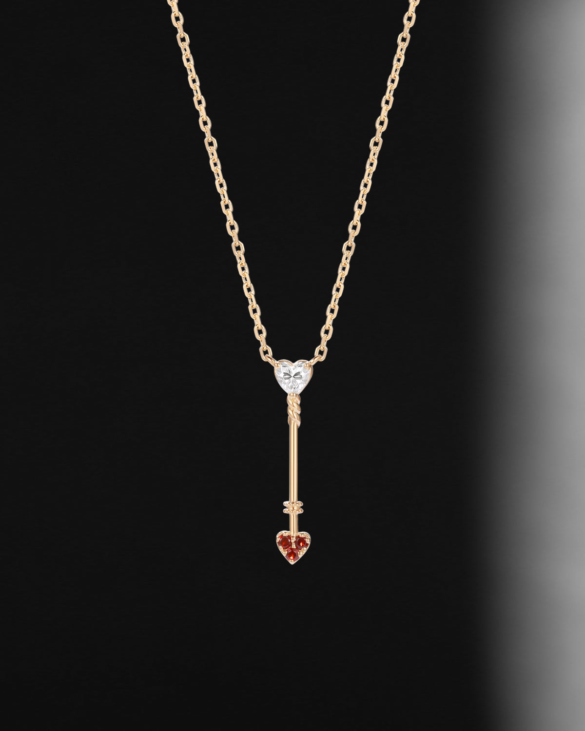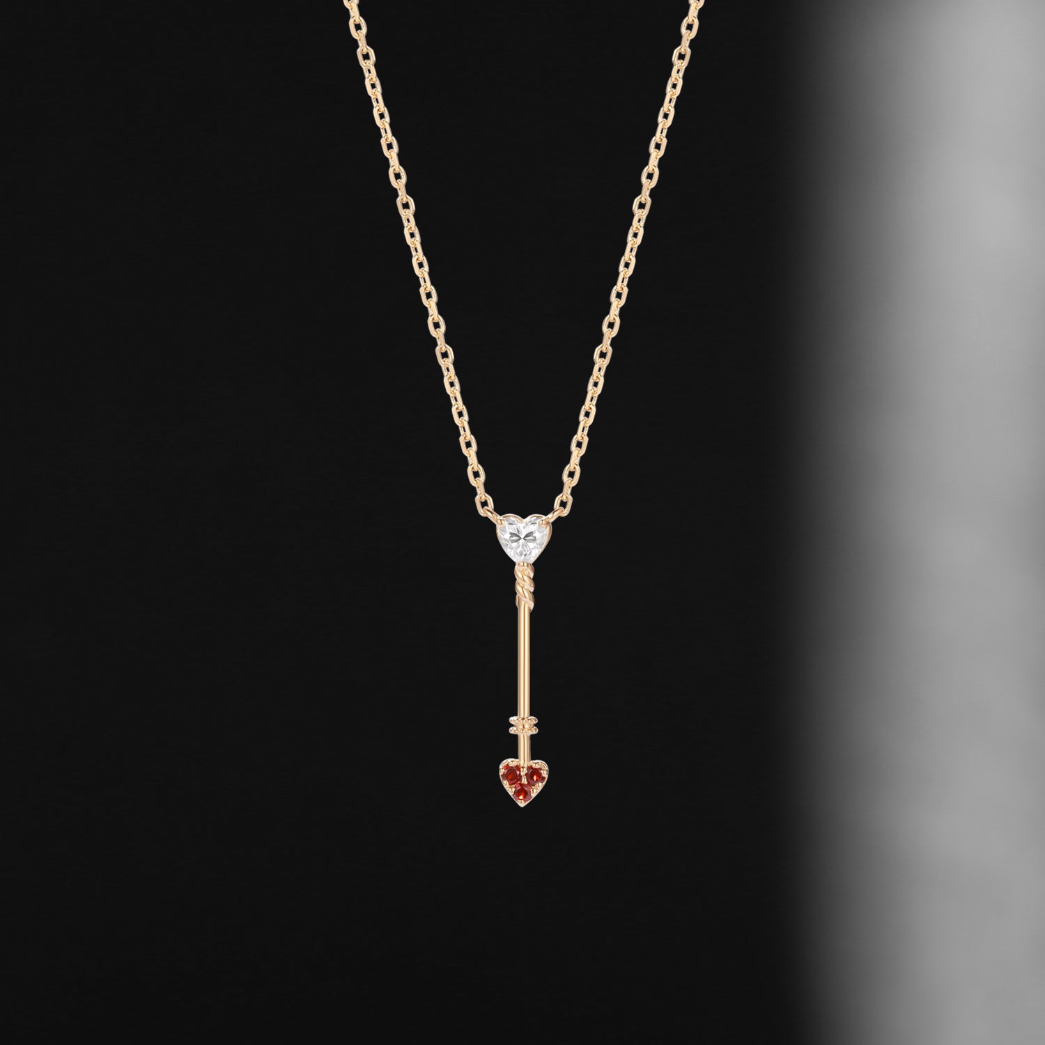 Lab Ruby Heart Cut Couple Necklaces Set 2pcs - Cupid's Arrow