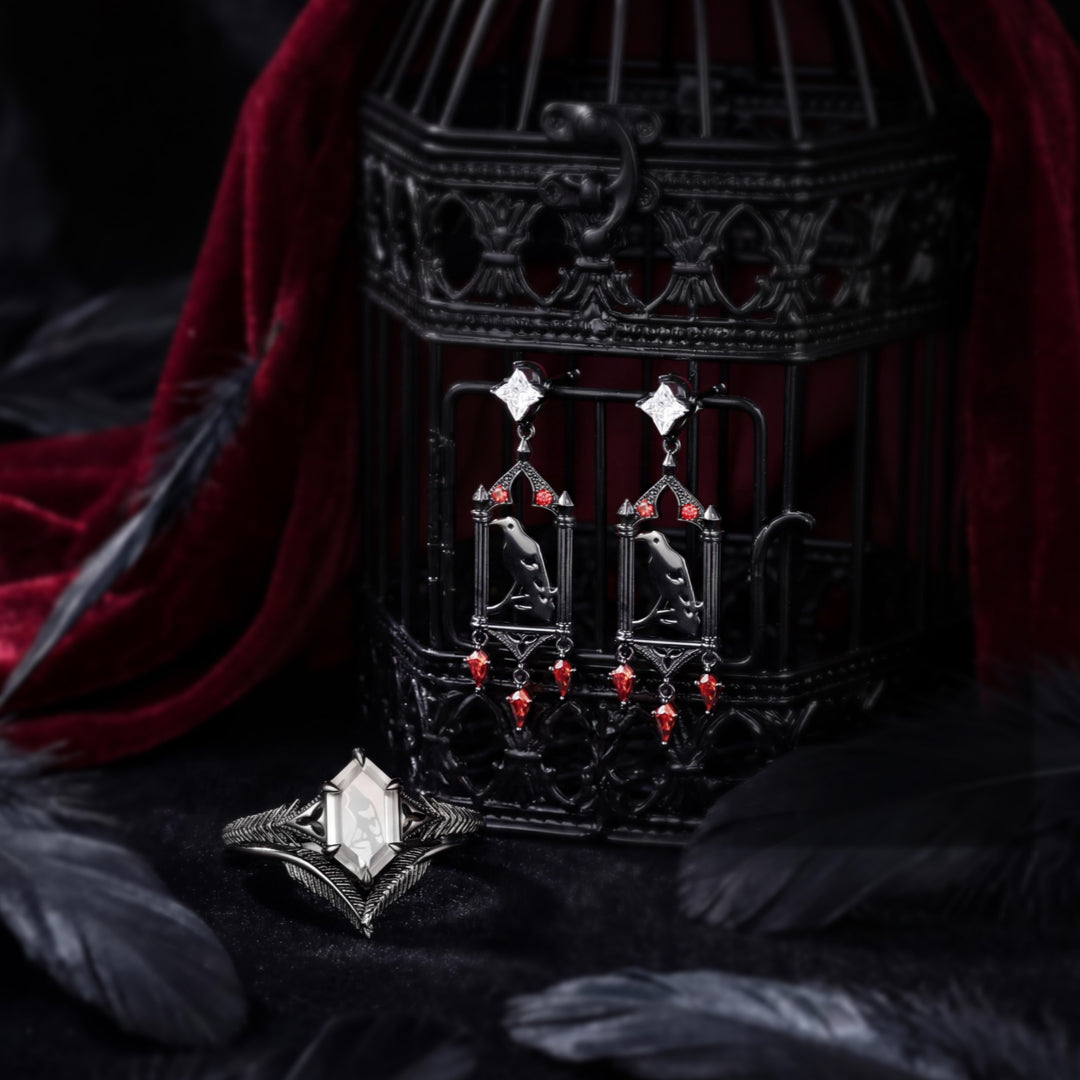 Unique Gothic Heart Garnet Sword Ring Feather Angel Wing Inspired Jewelry - 'Cupid's Arrow' Jewelry Box
