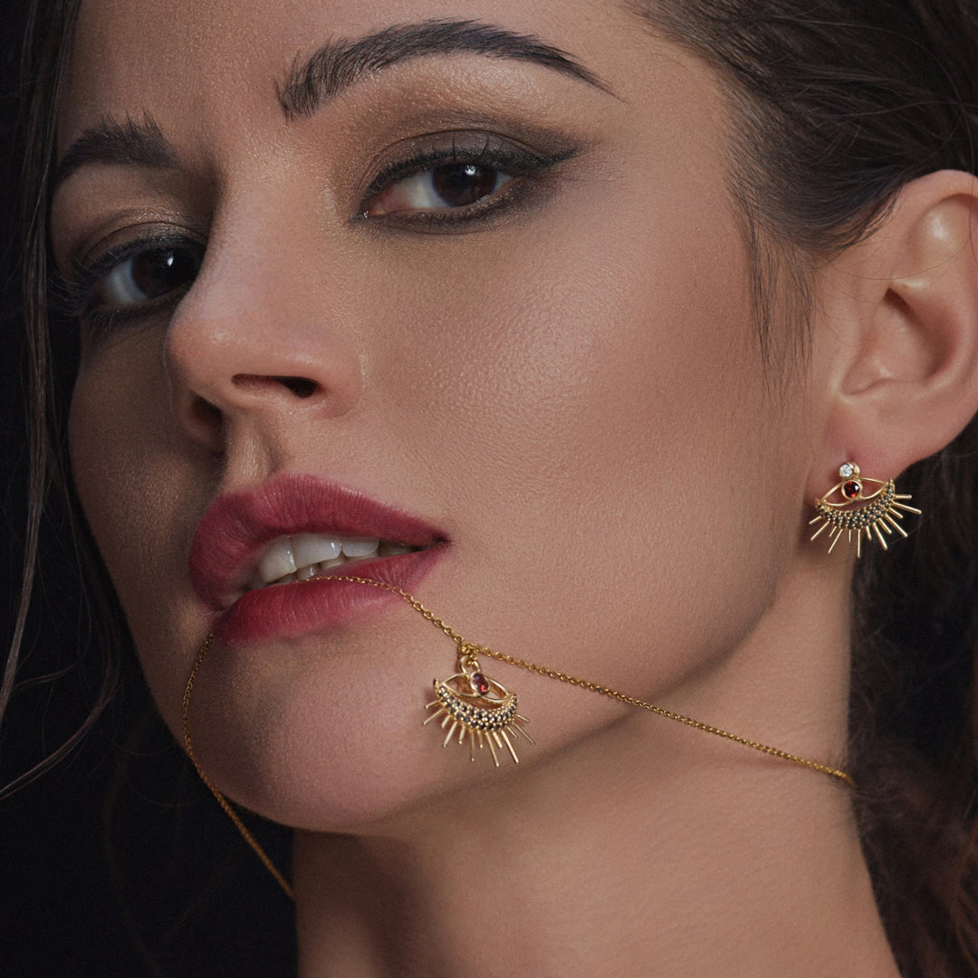 Lab Ruby Heart Shaped And Sword Earrings - Cupid's Arrow