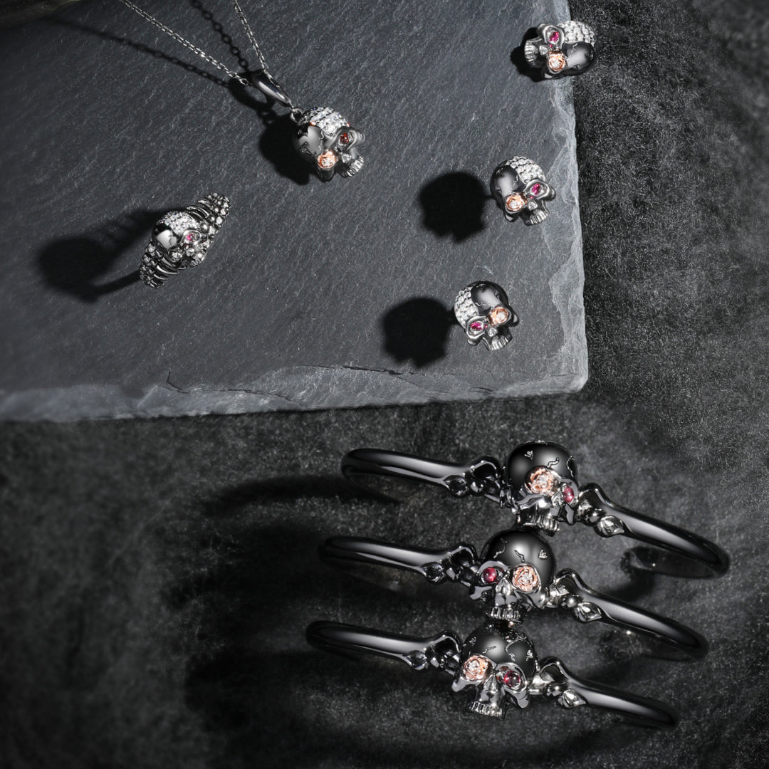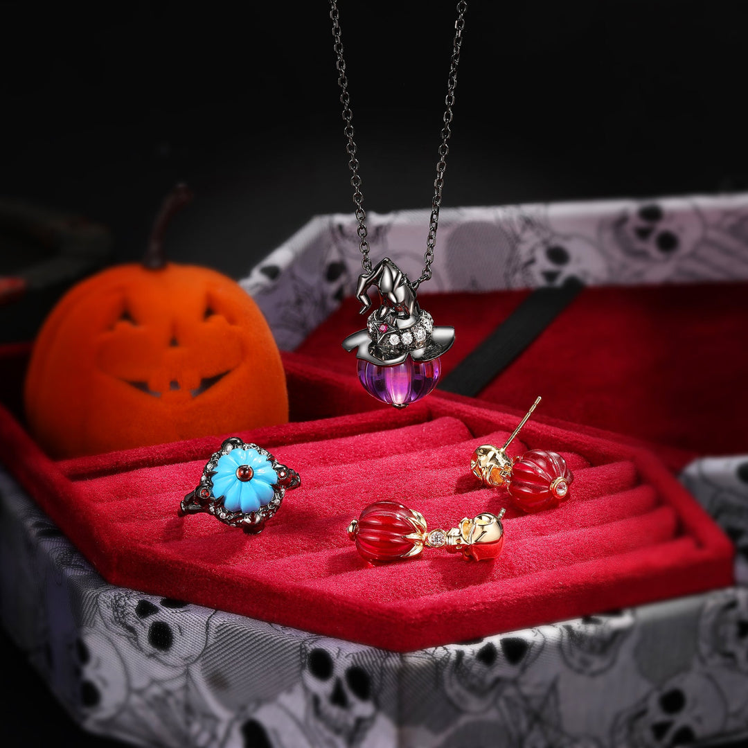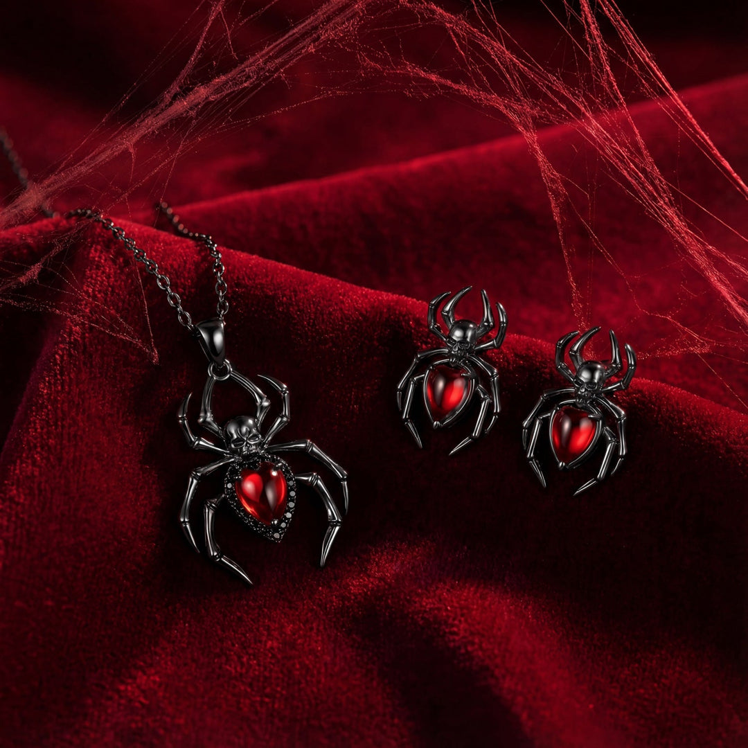 Unique Spider & Skull Pear Cut Garnet Halloween Gothic Pendant Necklace