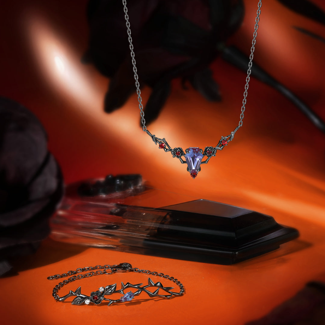 Nature Inspired 'Thorns & Roses' Coffin Cut Lab Alexandrite Gothic Halloween Necklace
