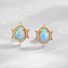 Crescent Moon Vintage Pear Cut Natural Opal Earrings