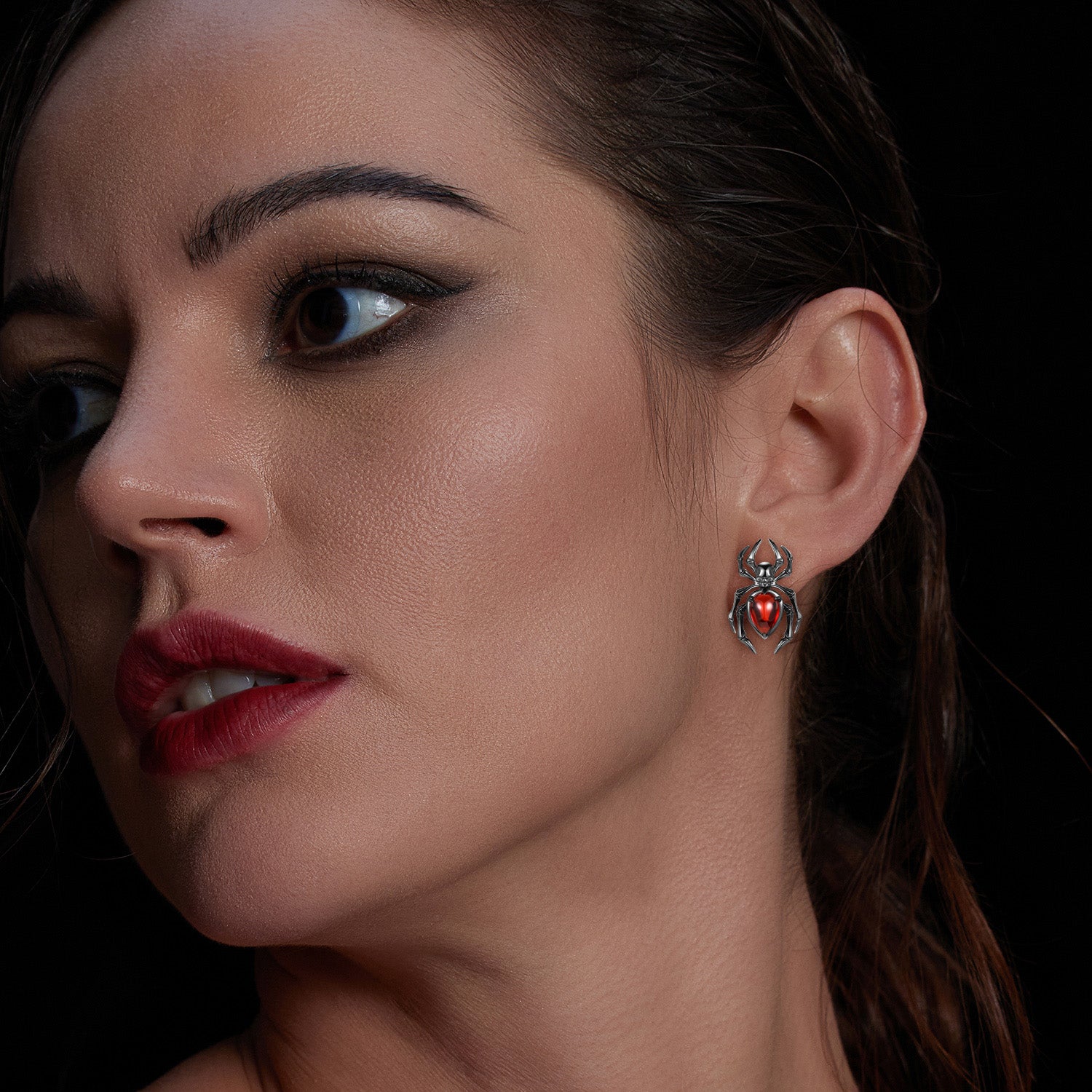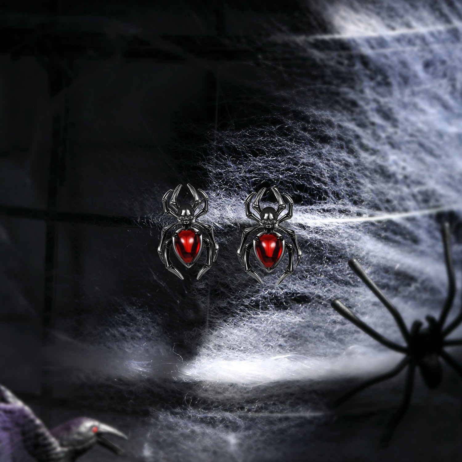 Gothic Spider & Skull Pear Shaped Garnet Halloween Stud Earrings Halloween Jewelry