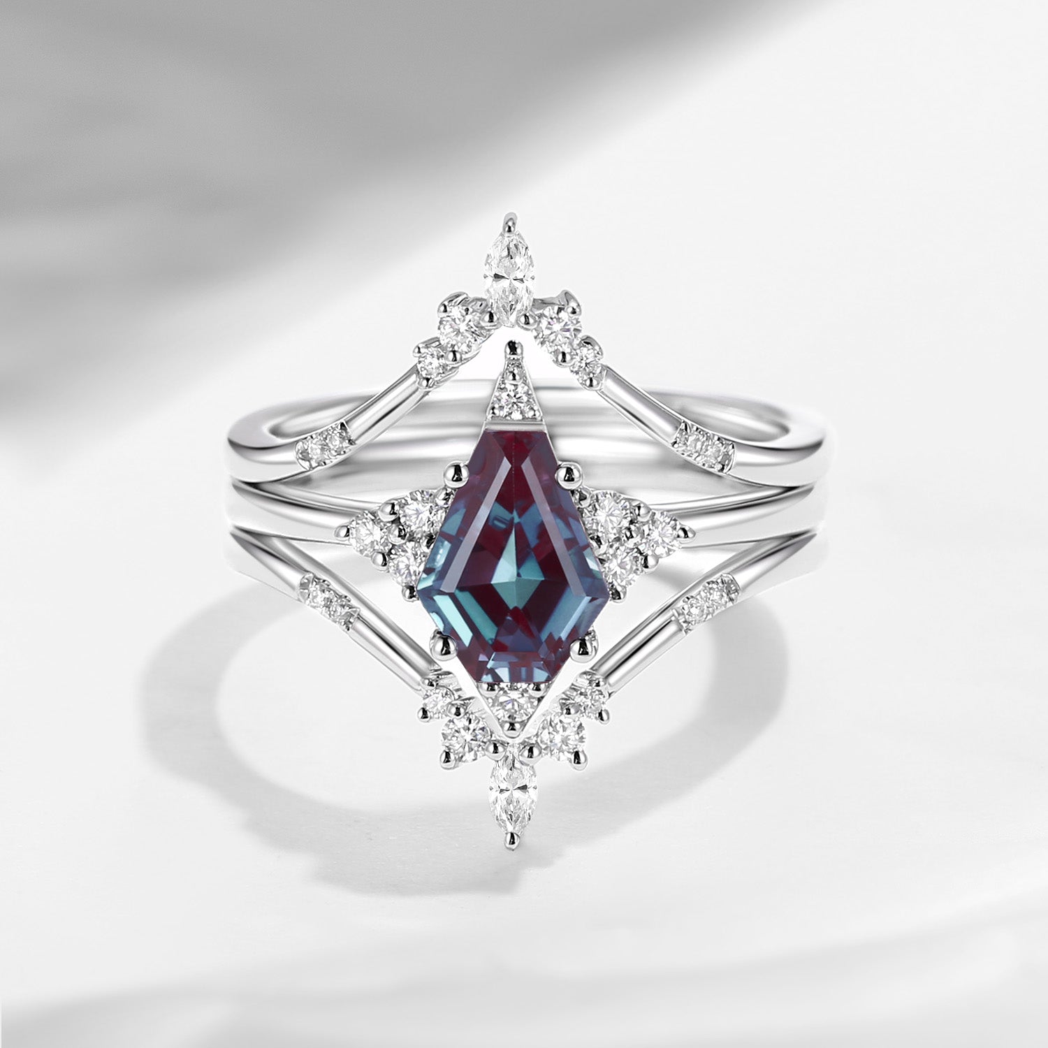 Coffin Cut Lab Alexandrite Star Bridal Set 3pcs