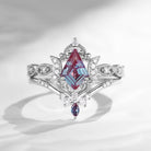 Crescent Moon | Blue Moonlight Kite Cut Unique Alexandrite Engagement Ring Set 2pcs - Luna