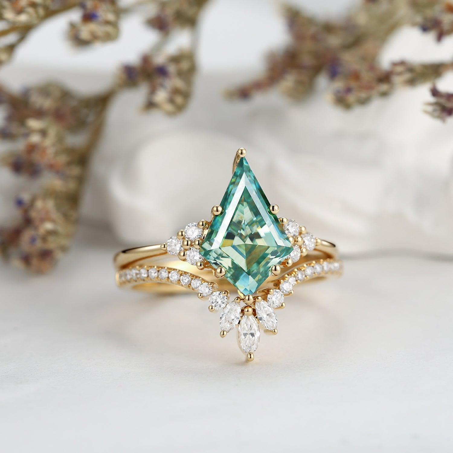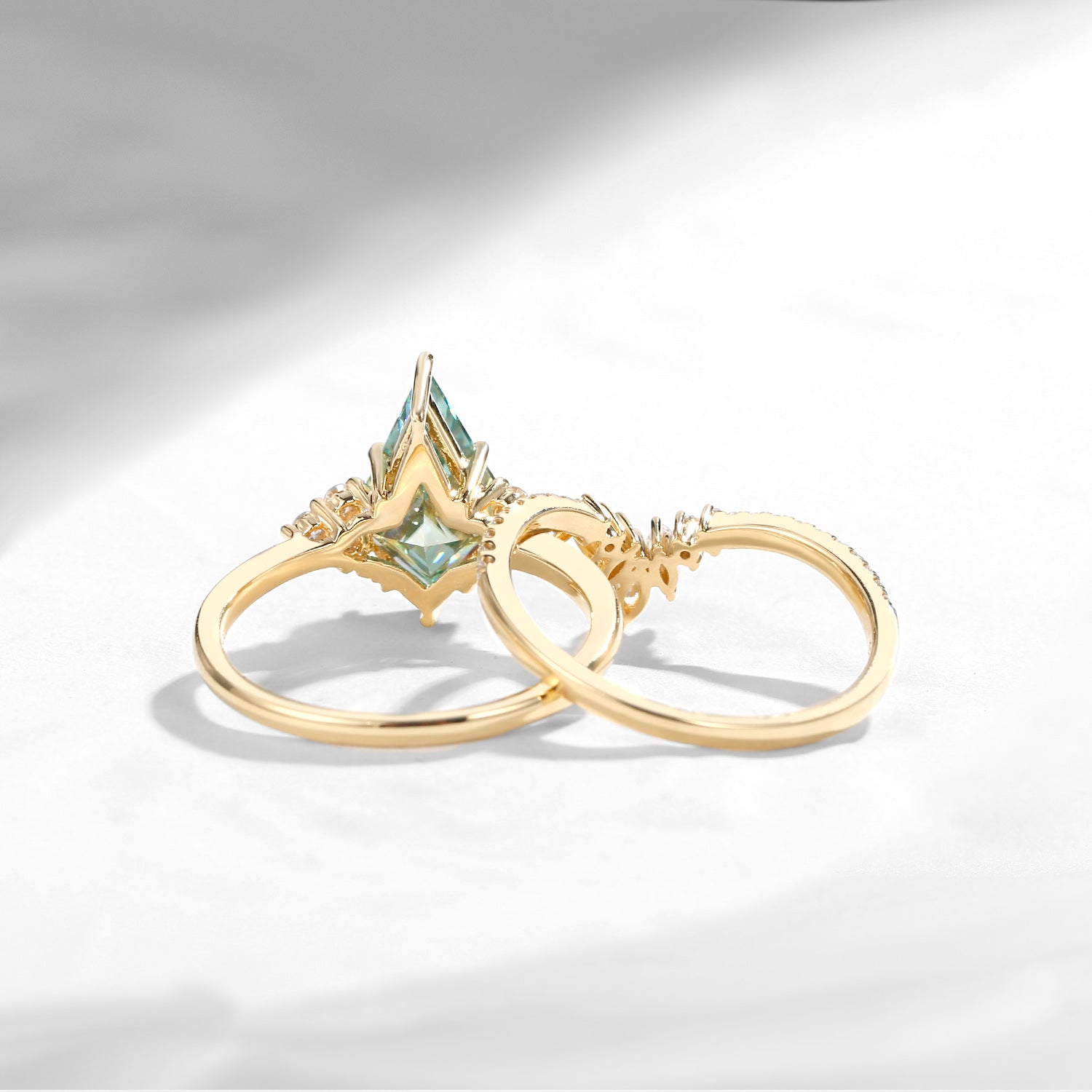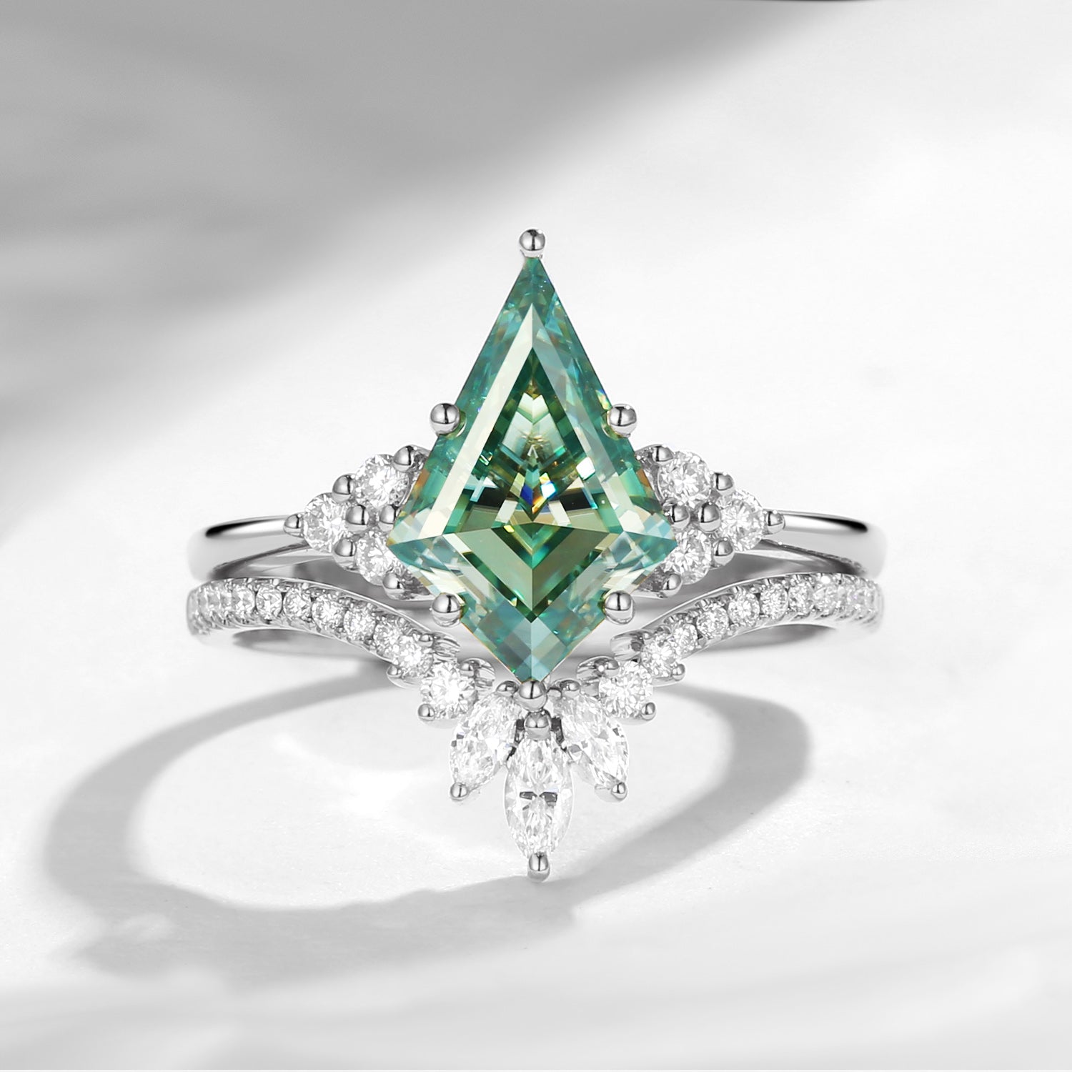 Kite Cut Green Moissanite Engagement Ring Set 2pcs - Electra