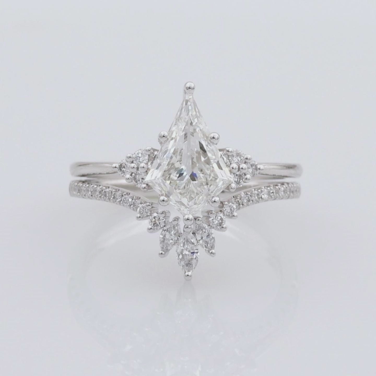 1.0-2.0ct Kite Cut Lab Diamond Classic Cluster Engagement Ring Set 2pcs