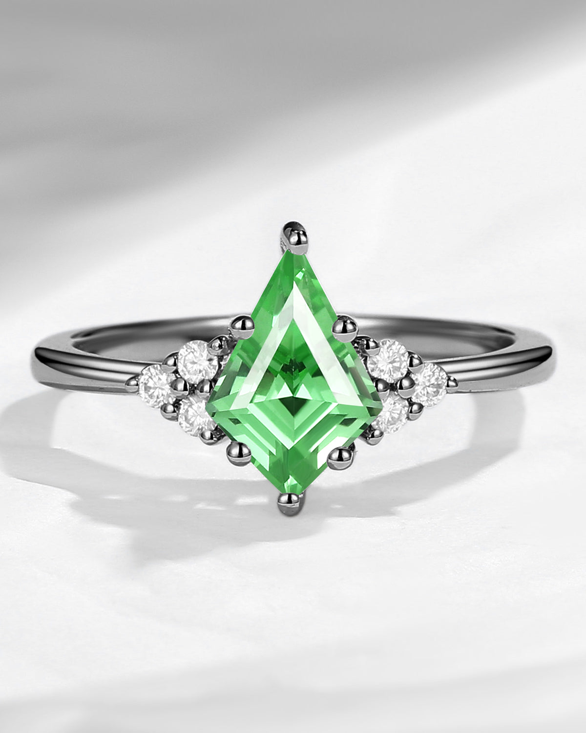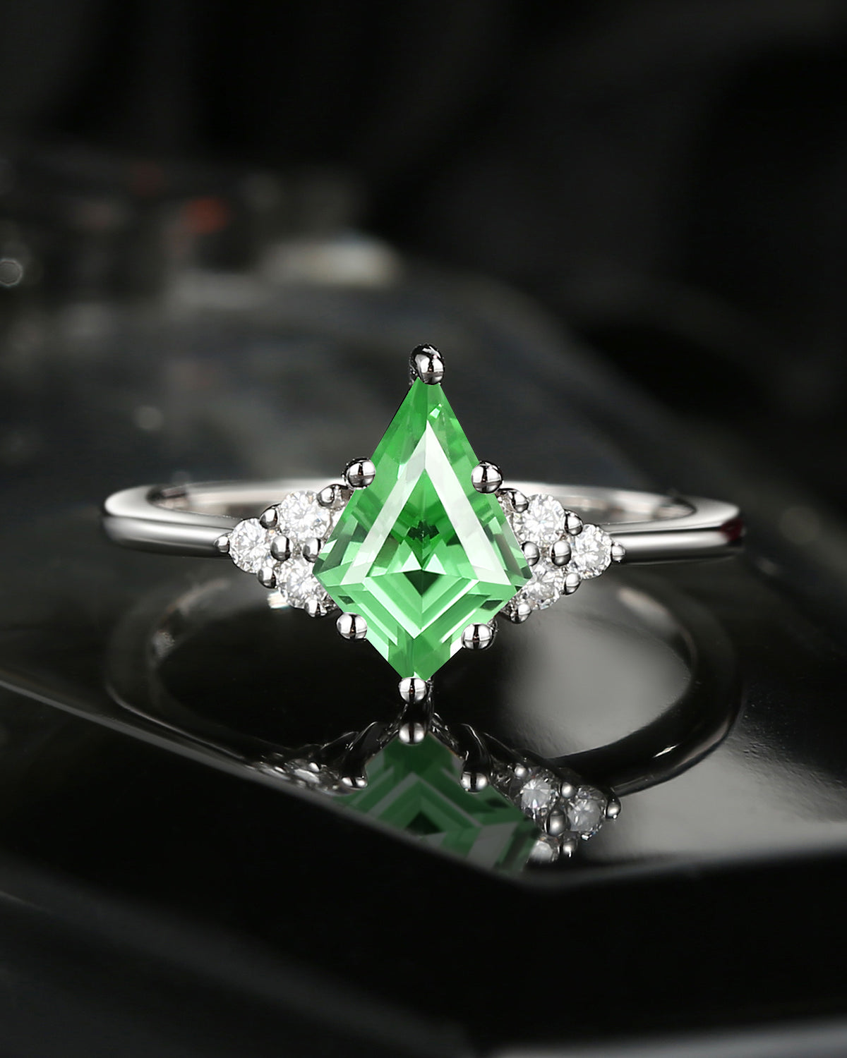 Classic Style Kite Cut Lab Tsavorite Cluster Engagement Ring