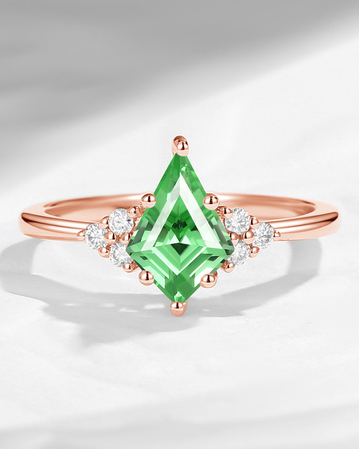 Kite Cut Lab Tsavorite Classic Cluster Engagement Ring Set 2pcs - Electra