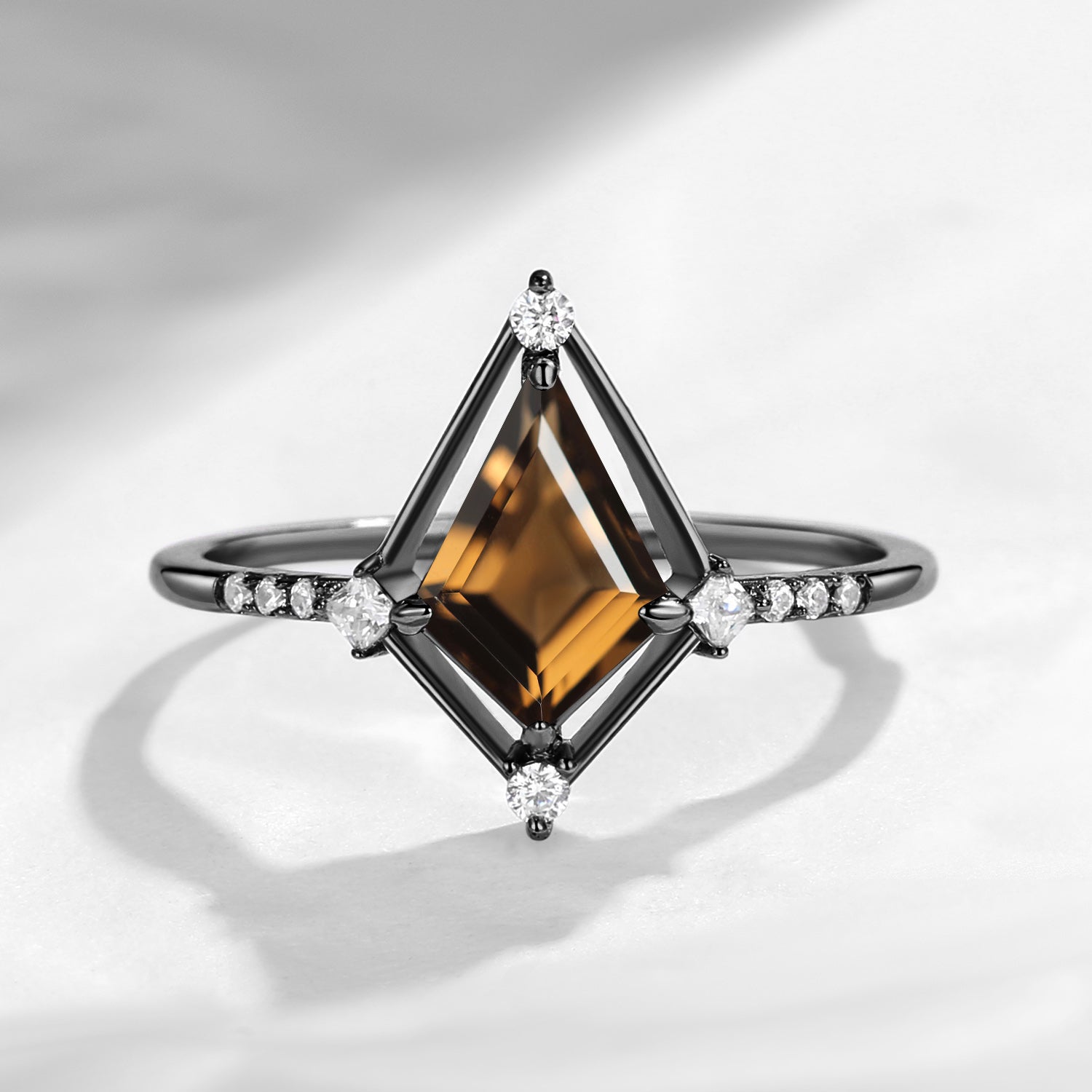 Vintage Inspired Kite Cut Lab Pink Diamond Milgrain Engagement Ring Set 2pcs