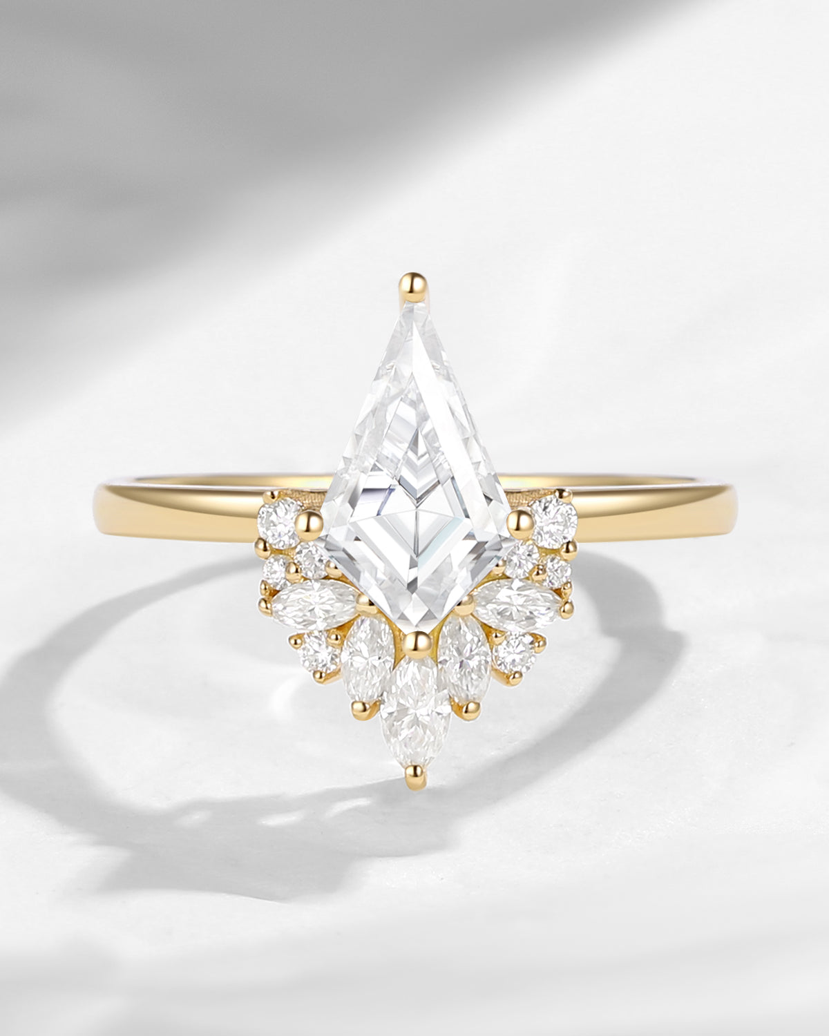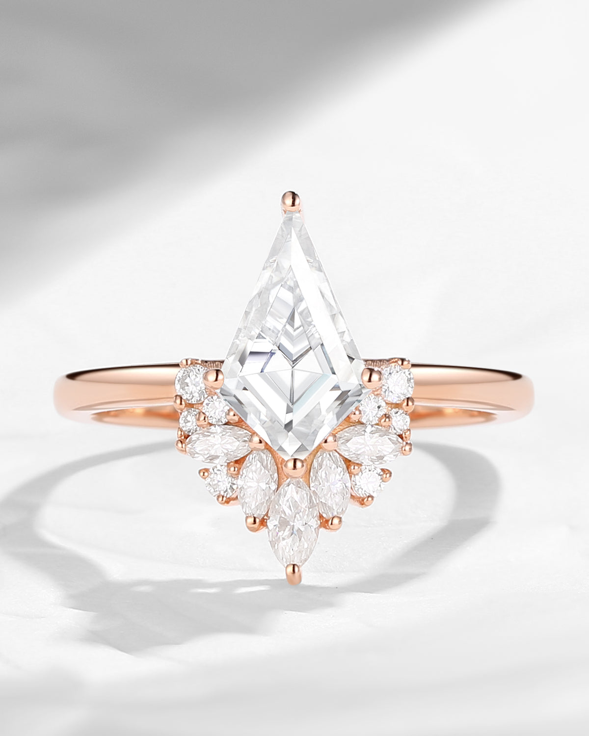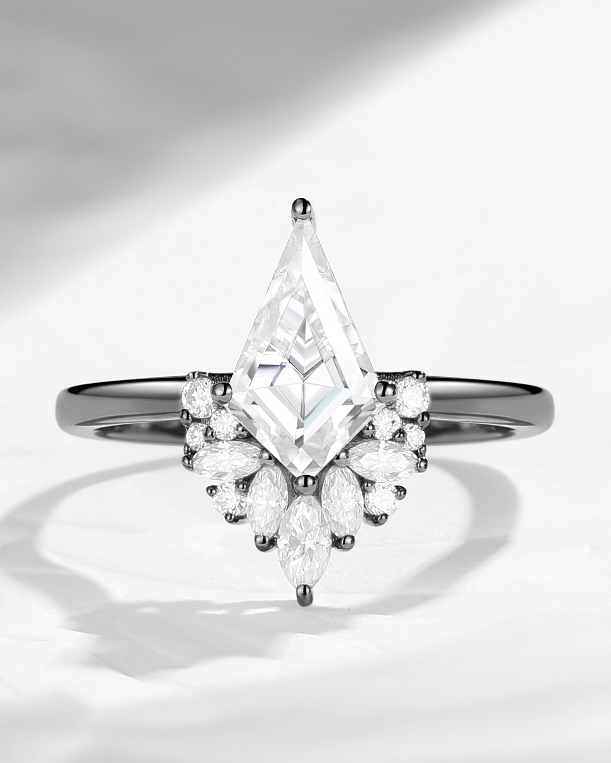 Art-Deco Kite Cut Moissanite Cluster Engagement Ring