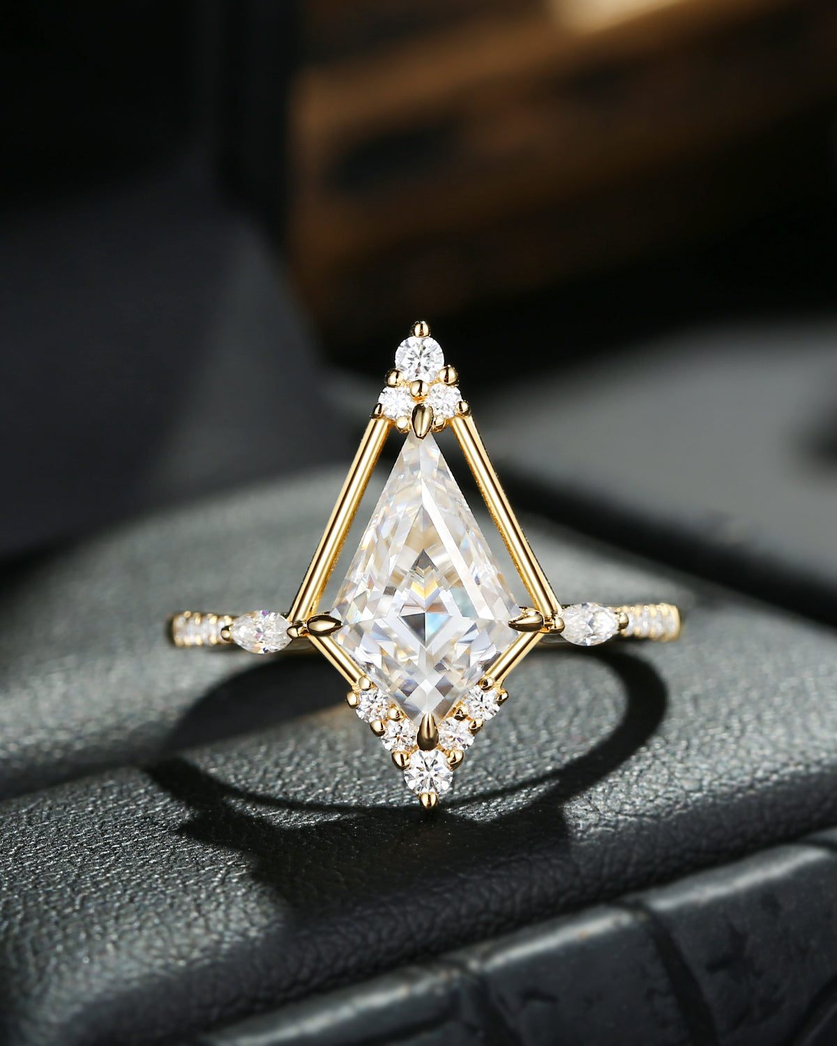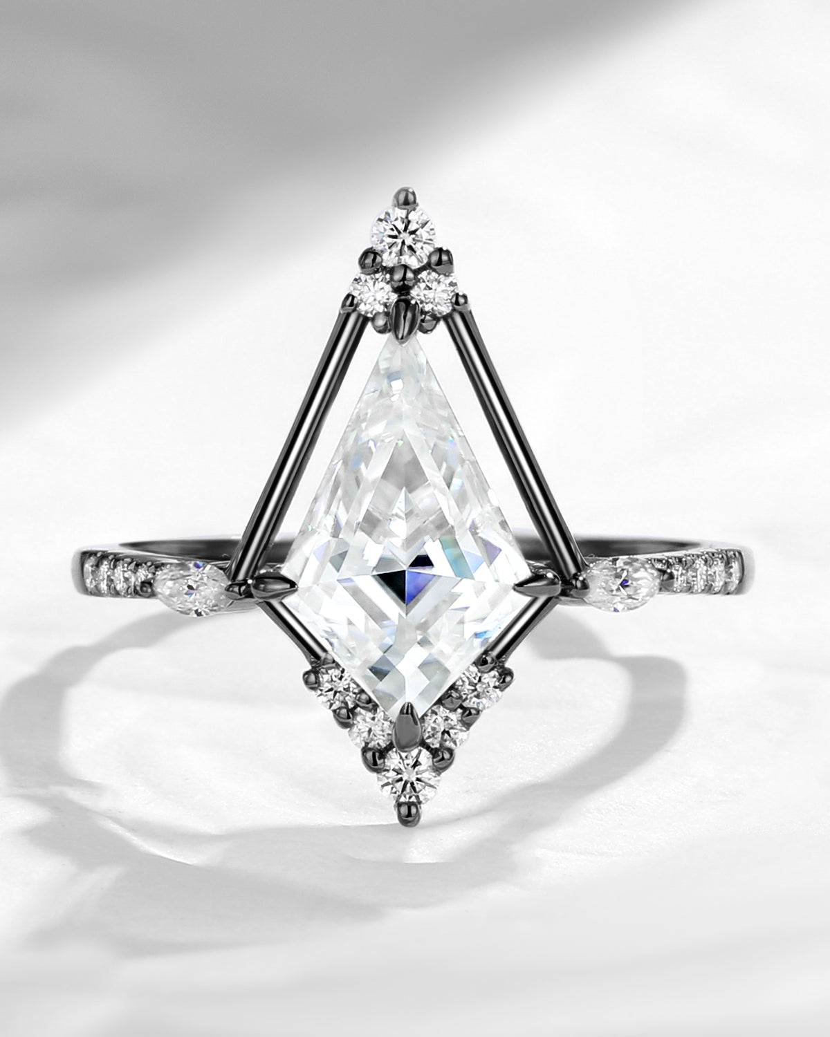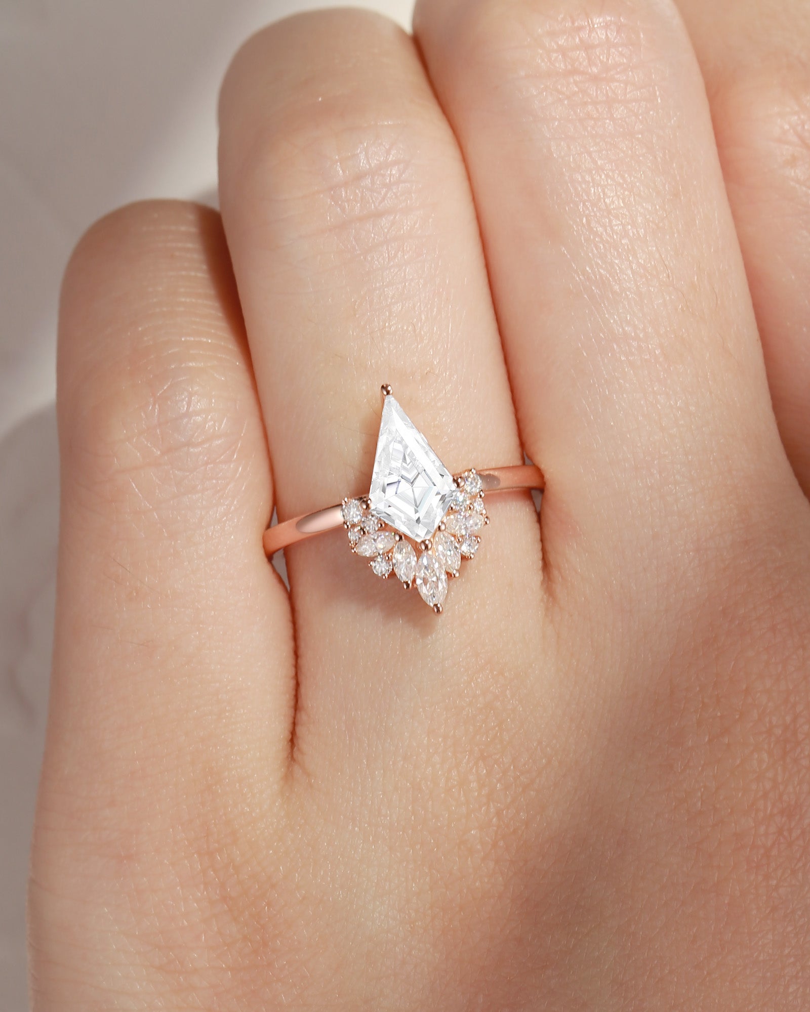 Art-Deco Kite Cut Moissanite Cluster Engagement Ring