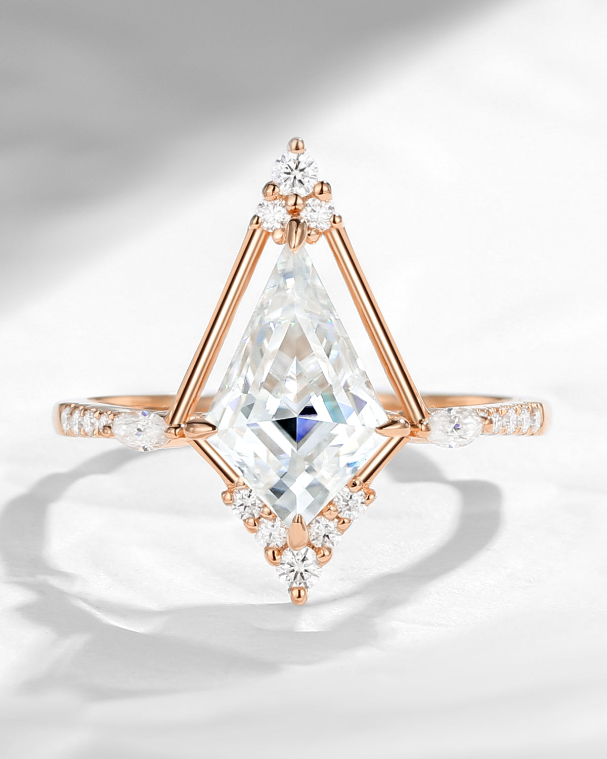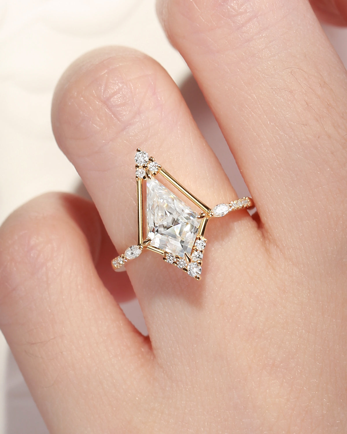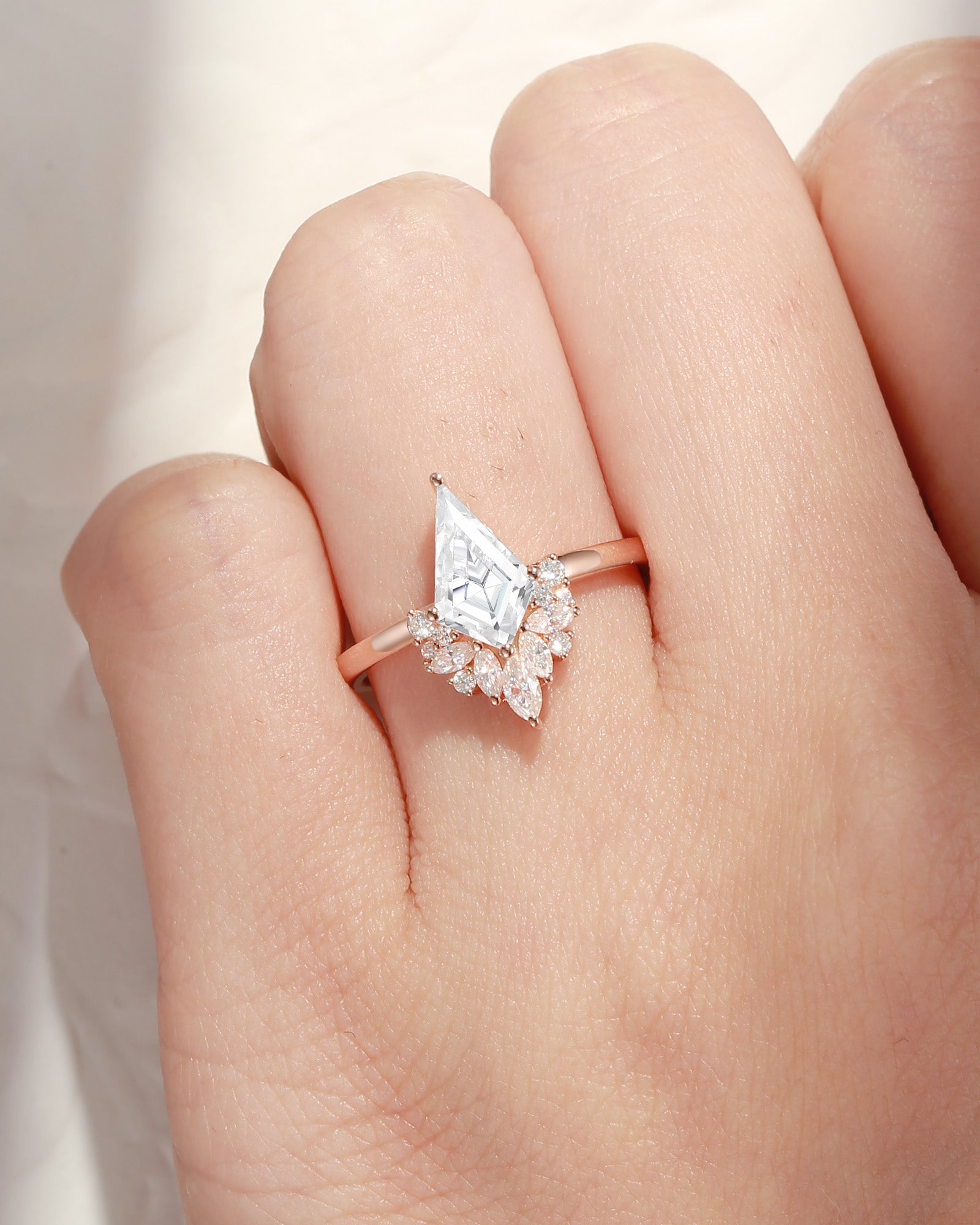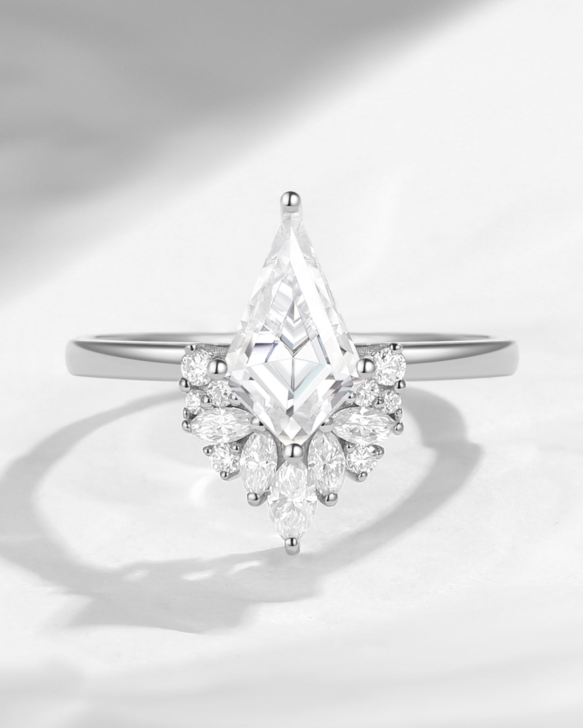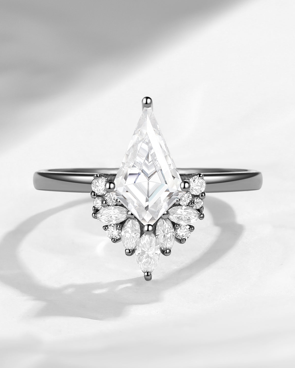 Unique Kite Shaped Moissanite Butterfly Cluster Engagement Ring