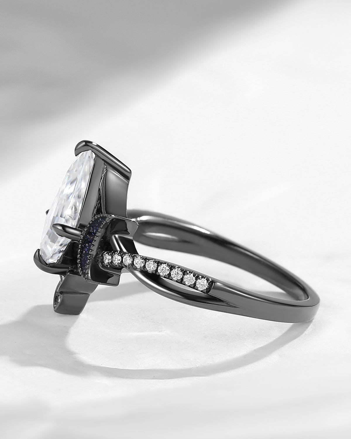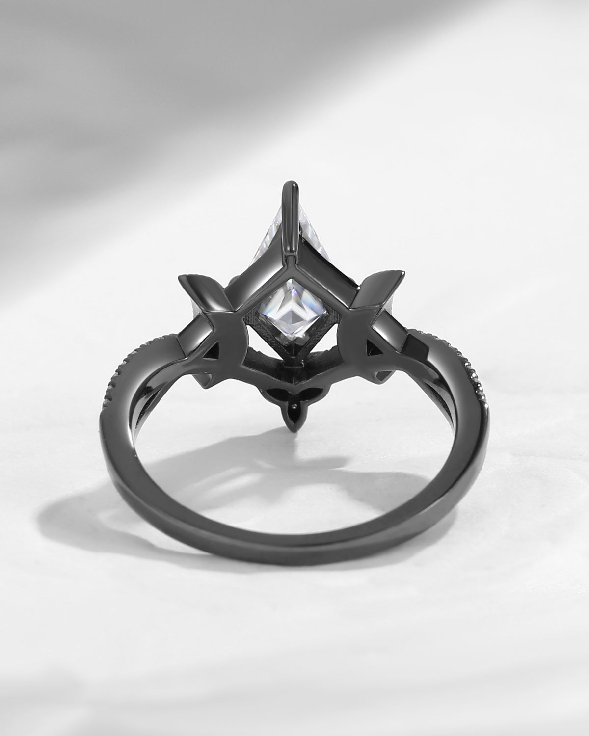 Celtic Moon | Kite Cut Moissanite Twist Celtic Moon Black Gold Engagement Ring