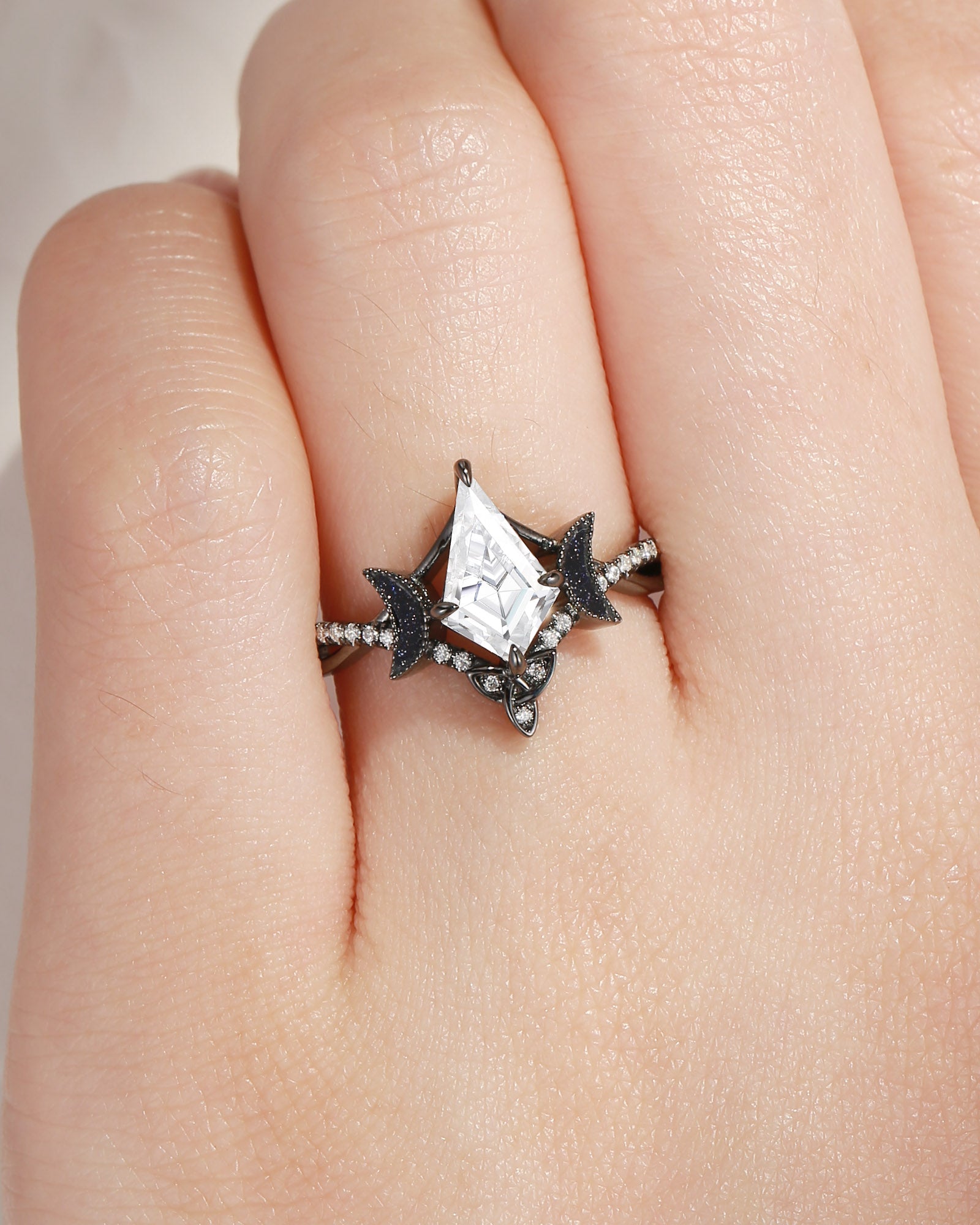 Celtic Moon | Kite Shaped Art Deco Moissanite Engagement Ring