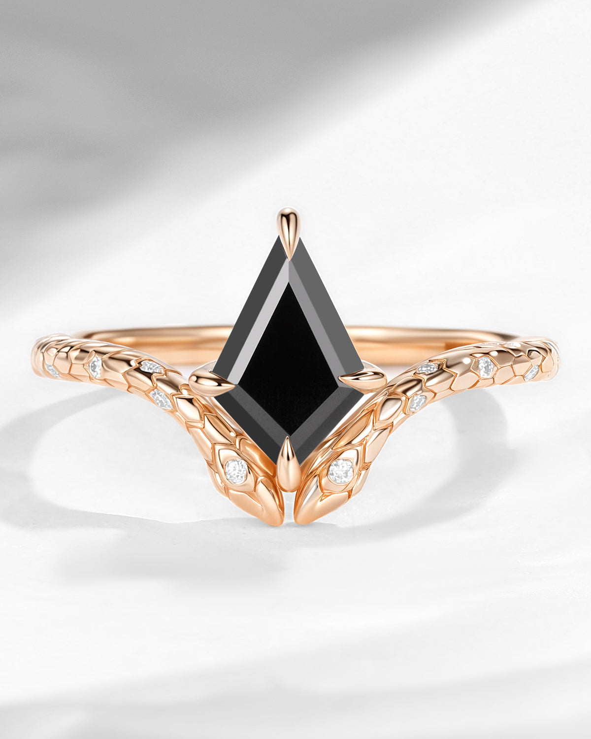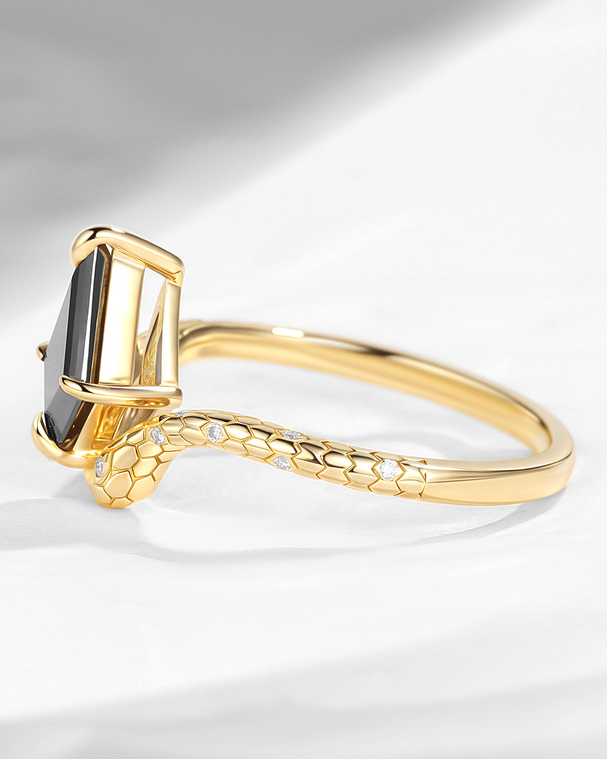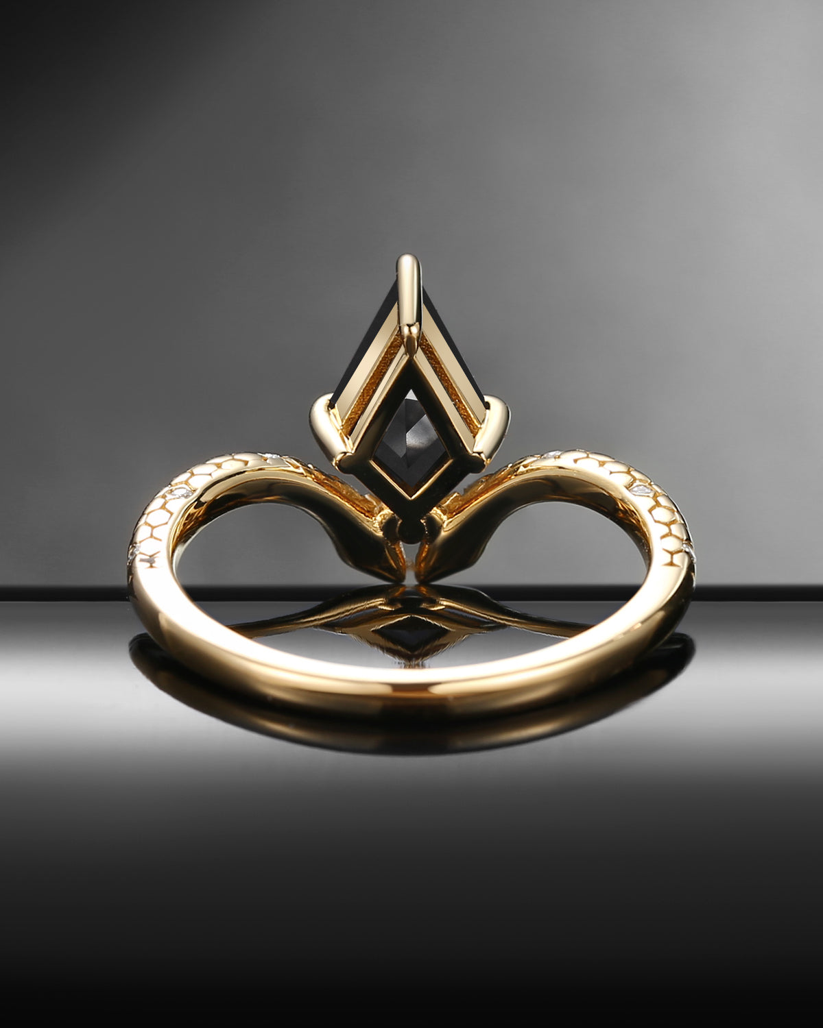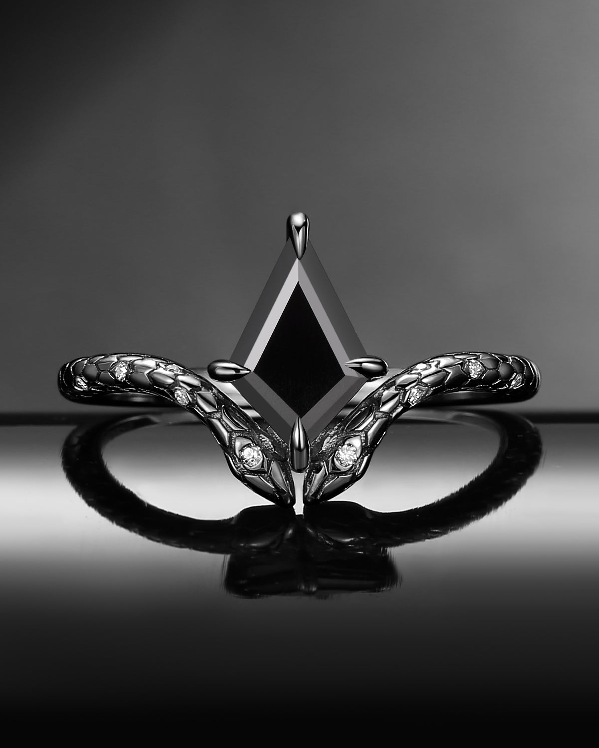 'Serpent's Embrace'- Snake Textured Kite Cut Black Moissanite Engagement Ring