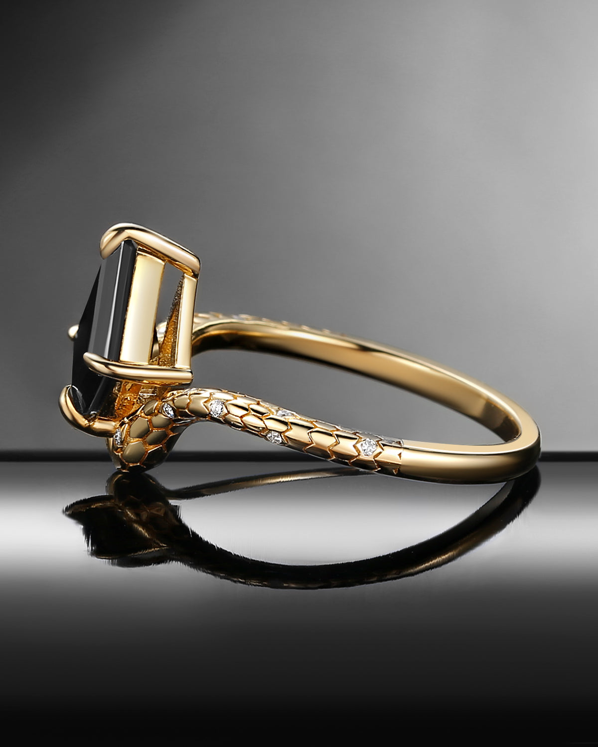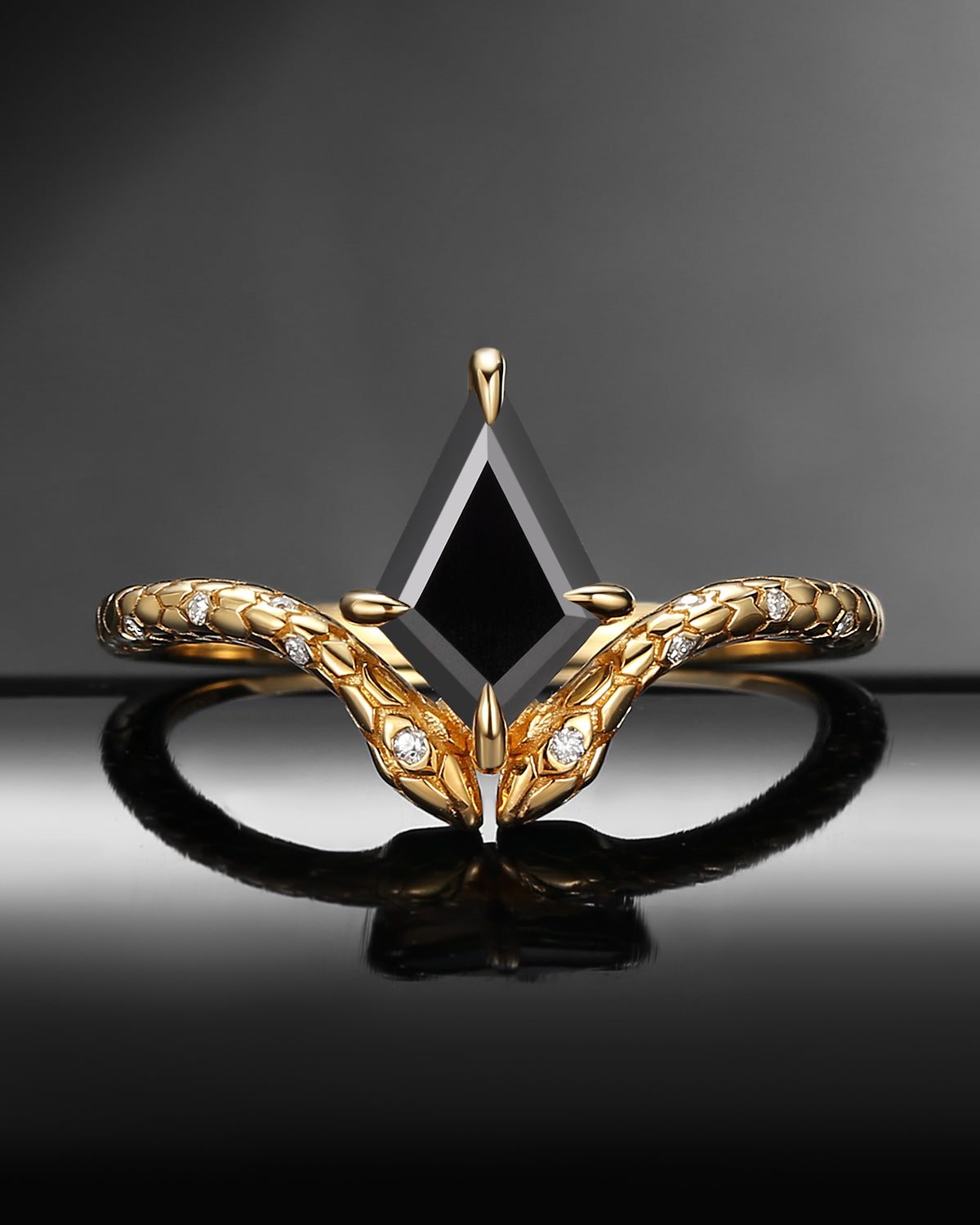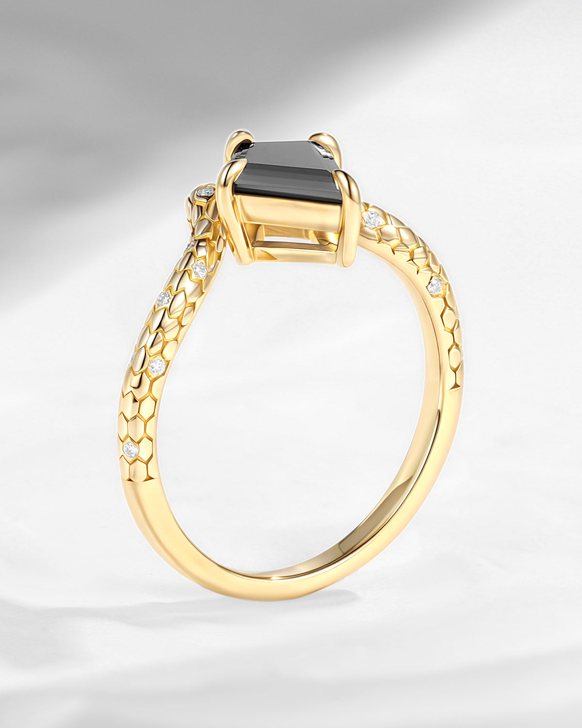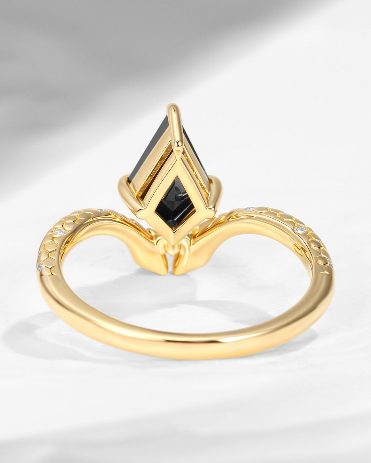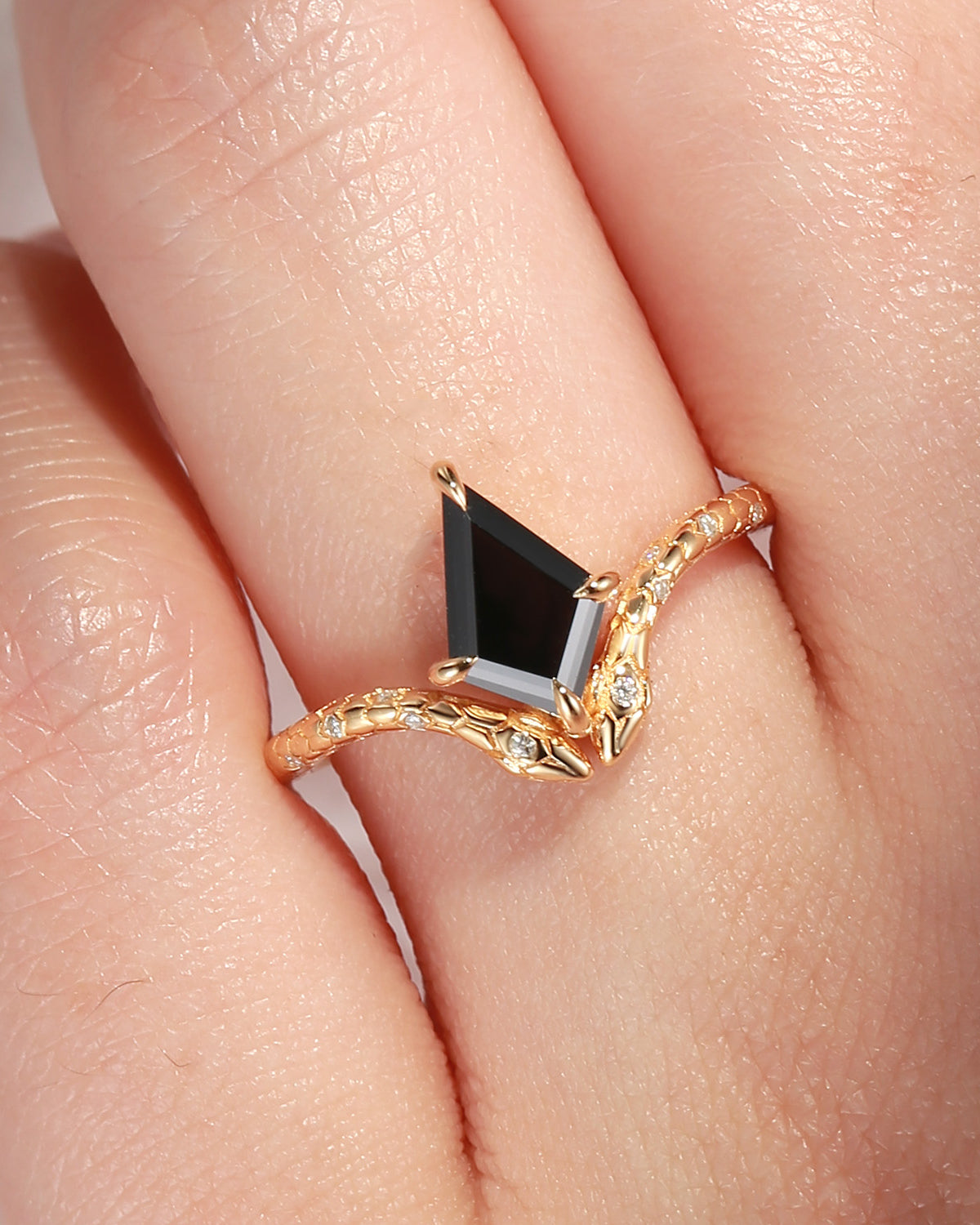 'Serpent's Embrace'- Snake Textured Kite Cut Black Moissanite Engagement Ring