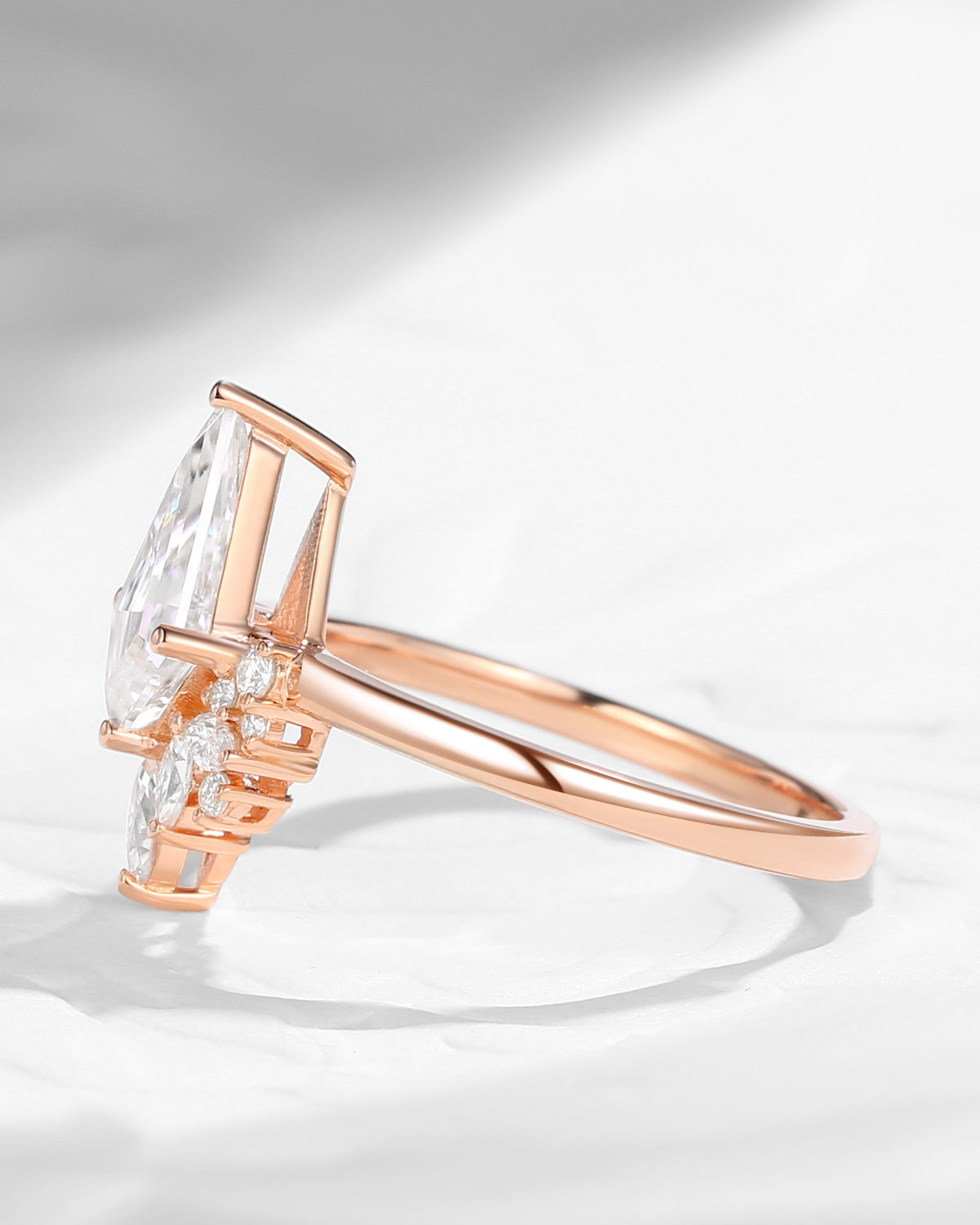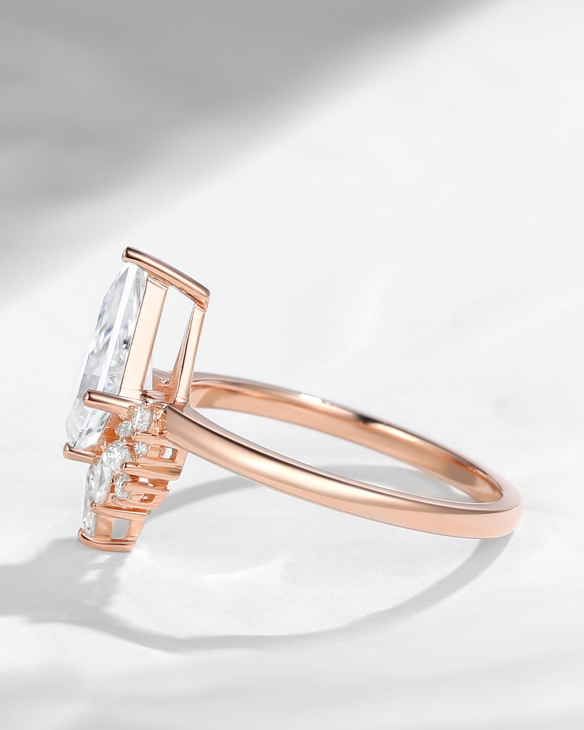 Kite Cut Moissanite Nature Inspired Cluster Engagement Ring Set 2pcs