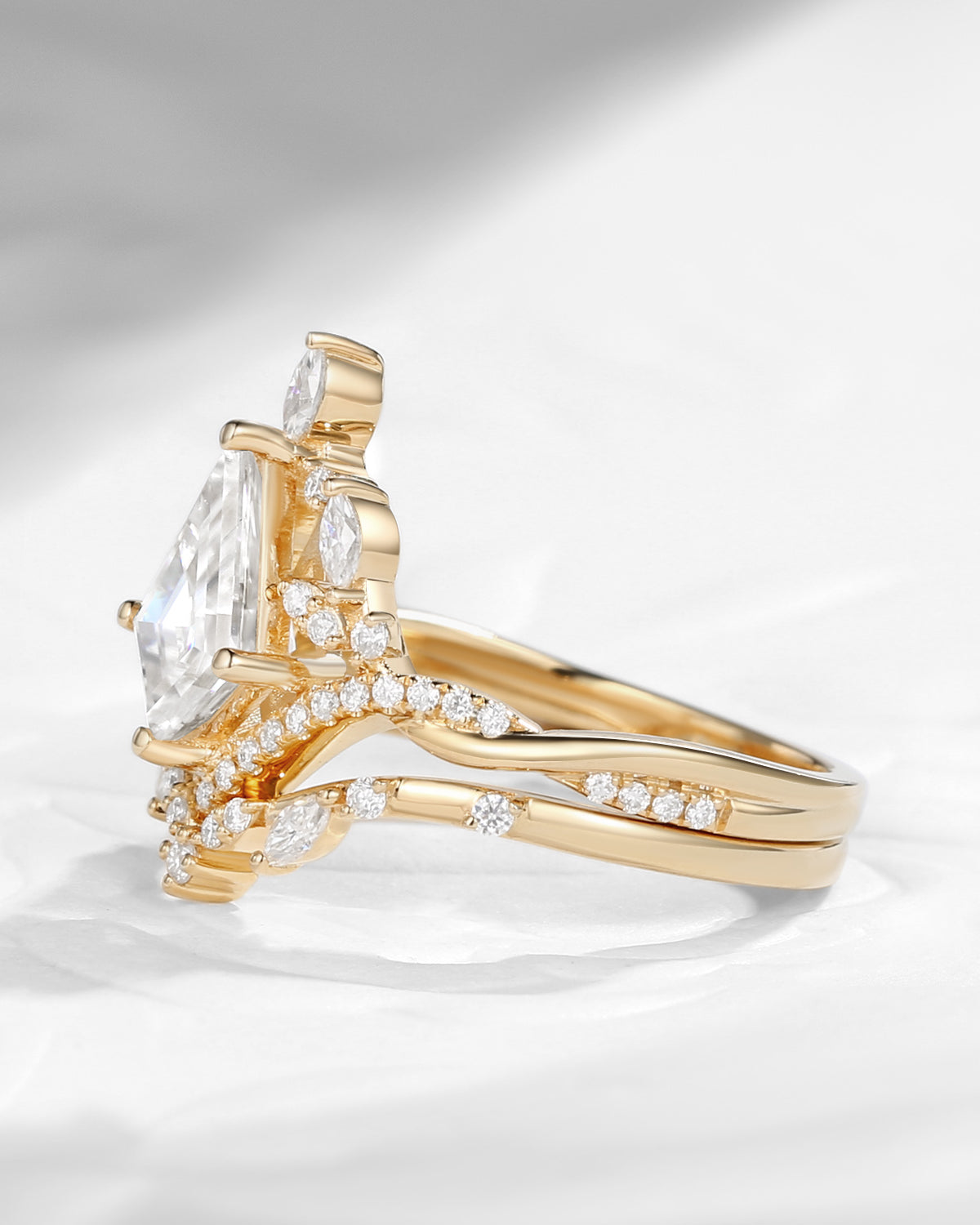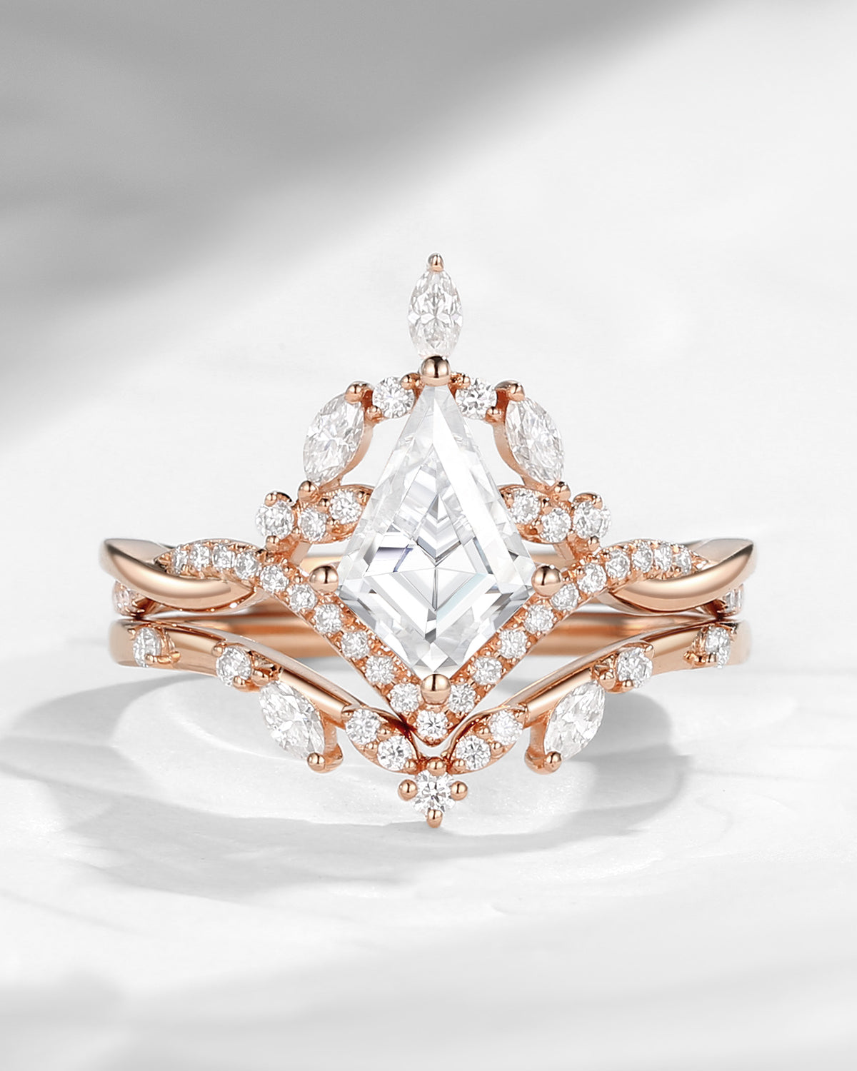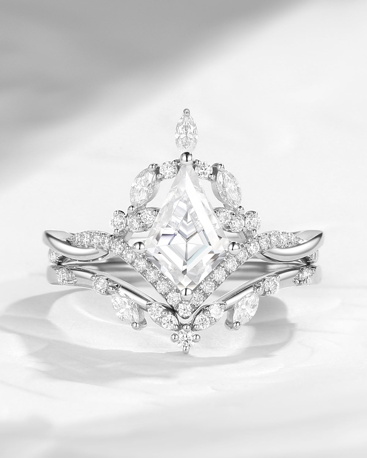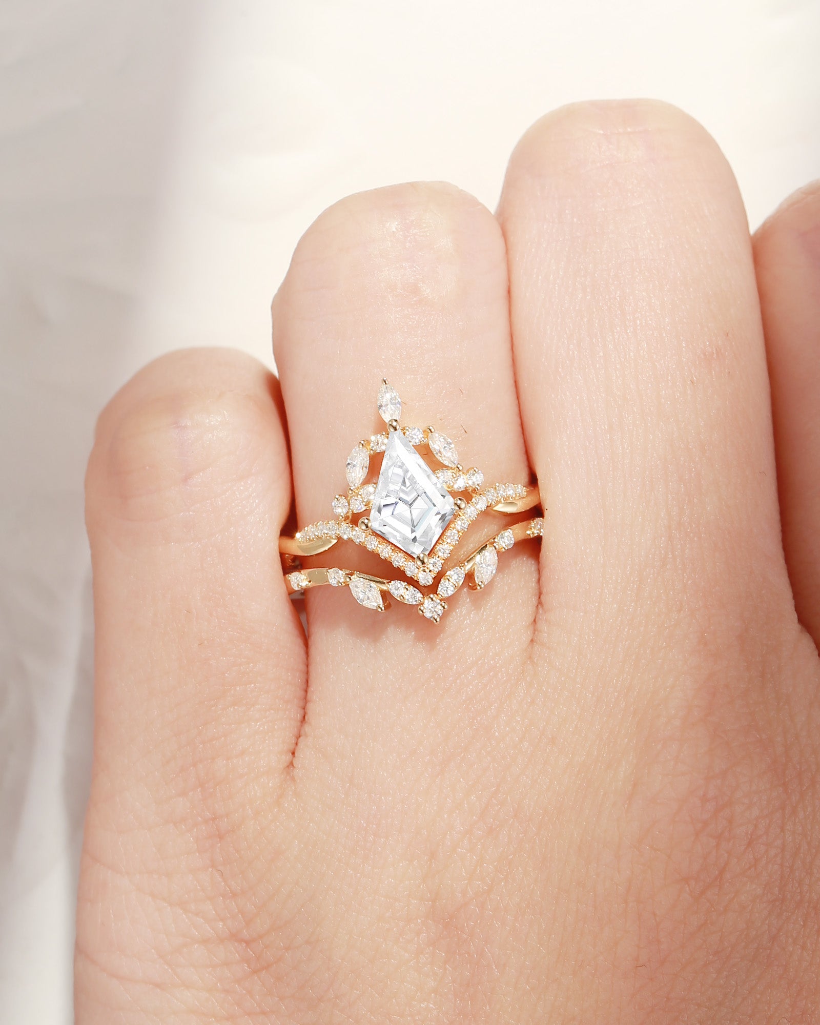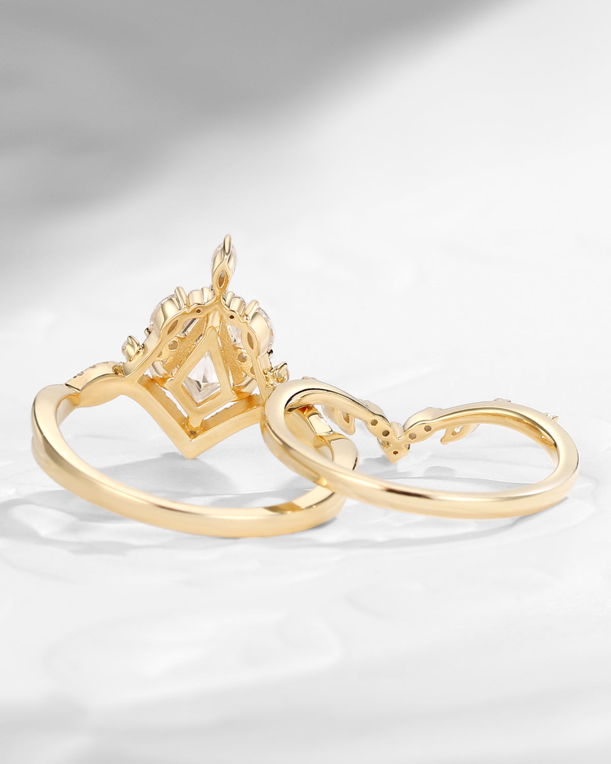 Celtic Moon | Kite Shaped Art Deco Moissanite Bridal Set 2pcs