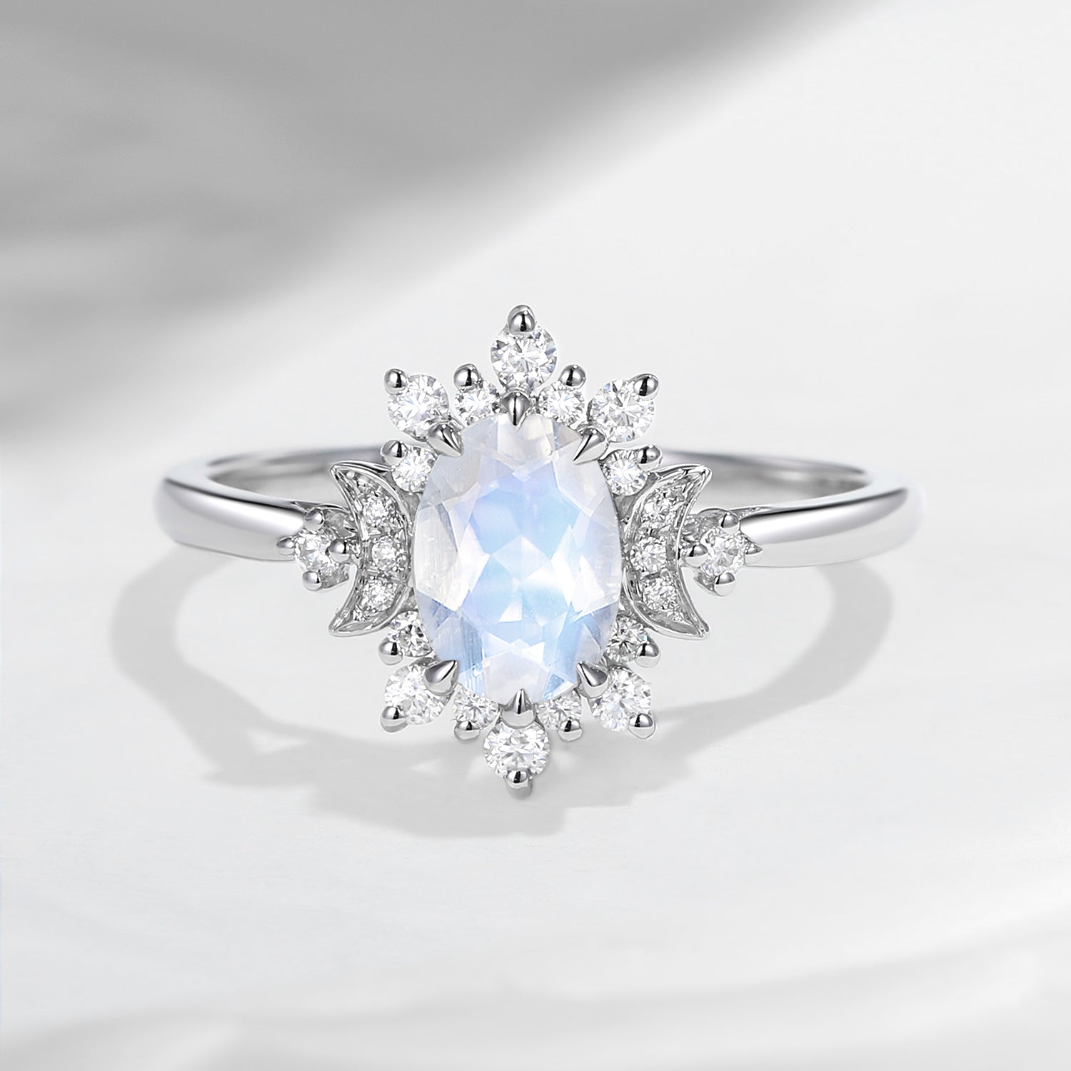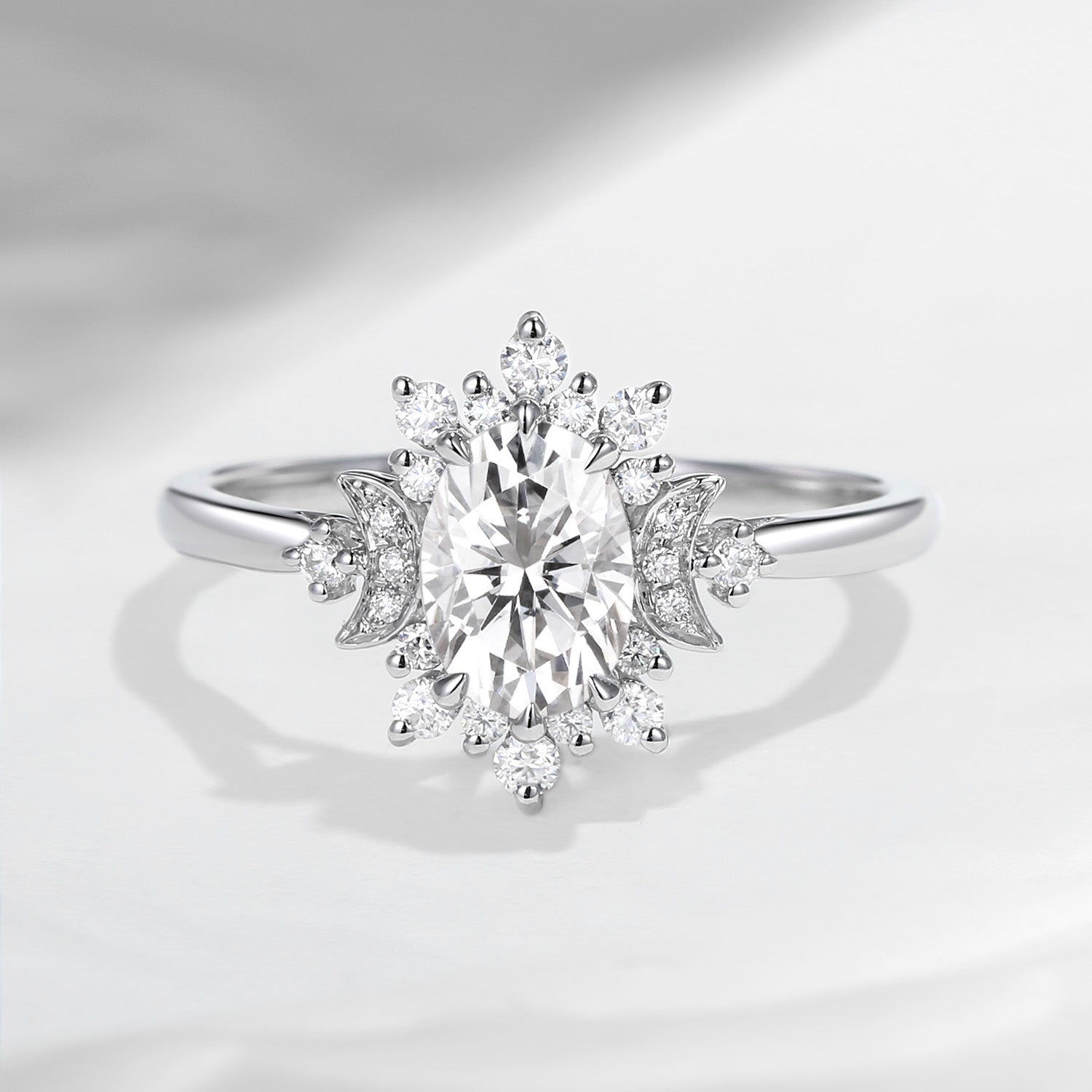 Crescent Moon | Oval Halo Lab Diamond Engagement Ring- Moonlight In Vermont