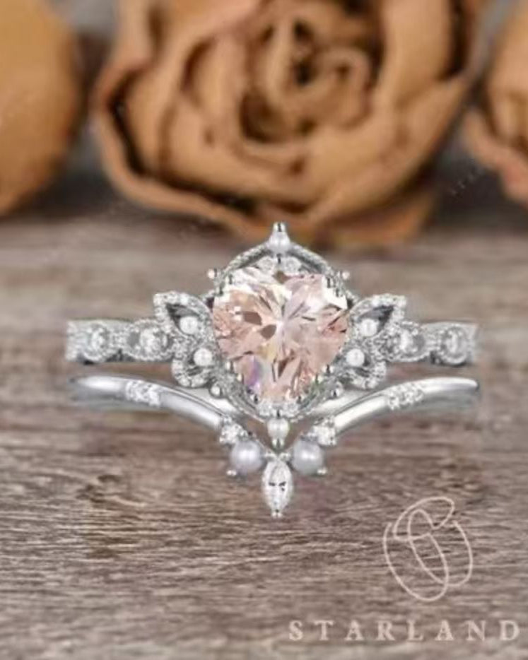 Unique Coffin Pink Lab Diamond Engagement Star Ring Set 2pcs - Coffin Kite