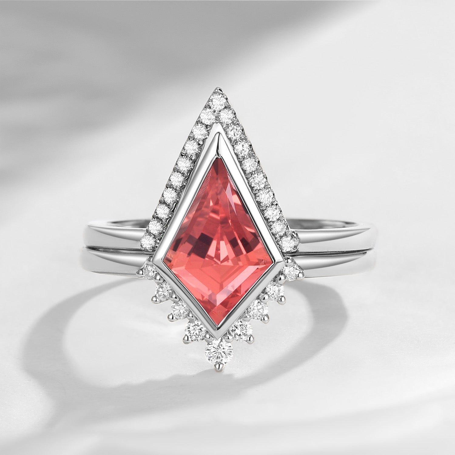Classic Kite Cut Lab Pink Sapphire Ring Set 2pcs - Statement