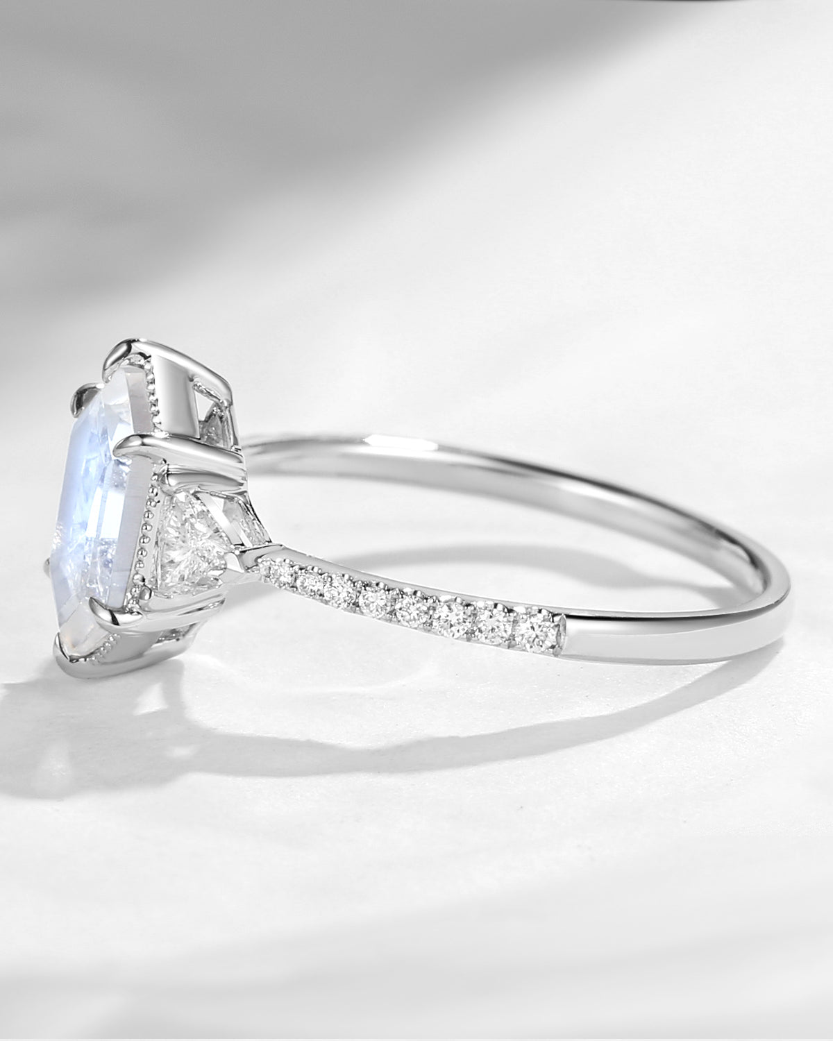 Classic Long Hexagon Moonstone Engagement Ring