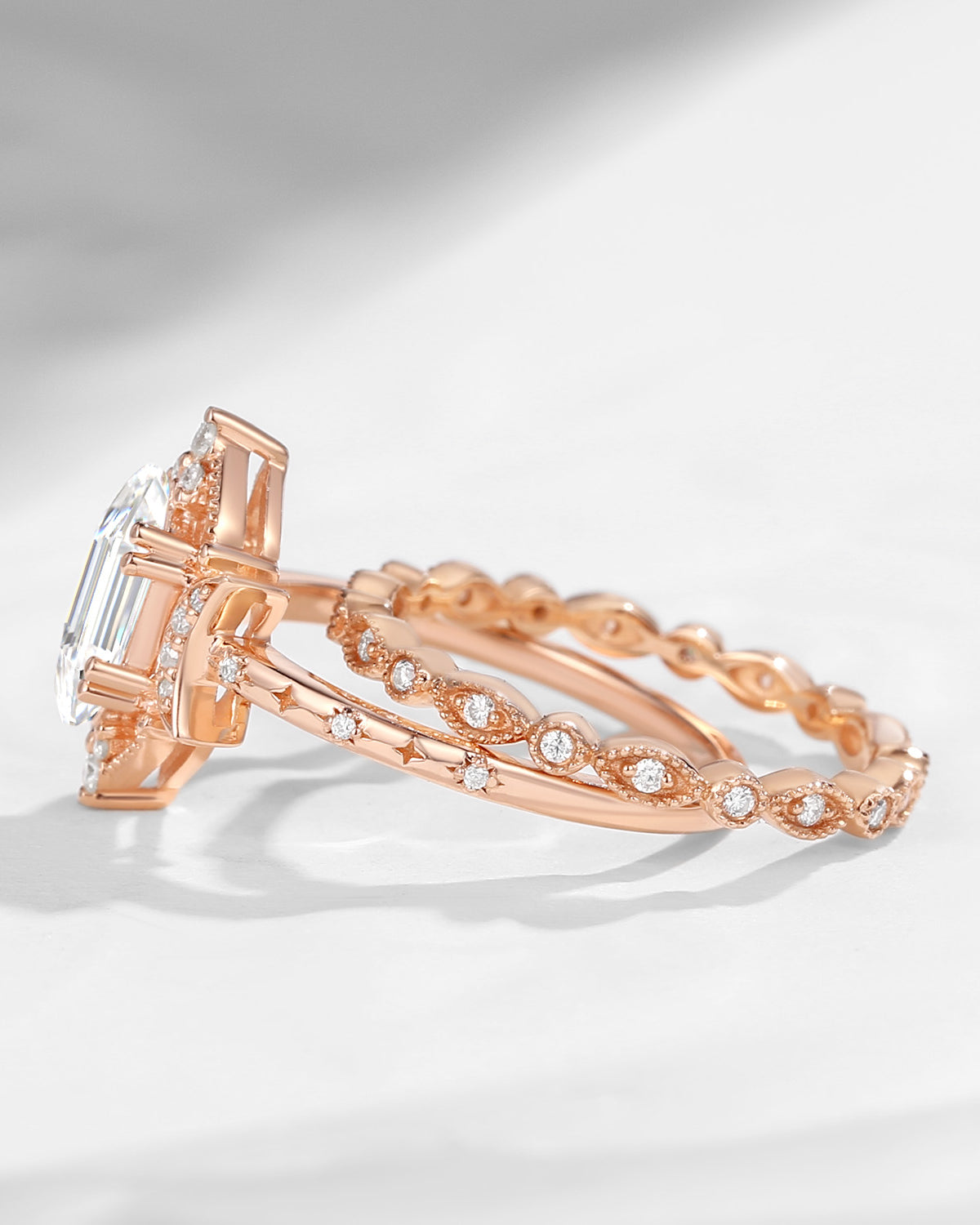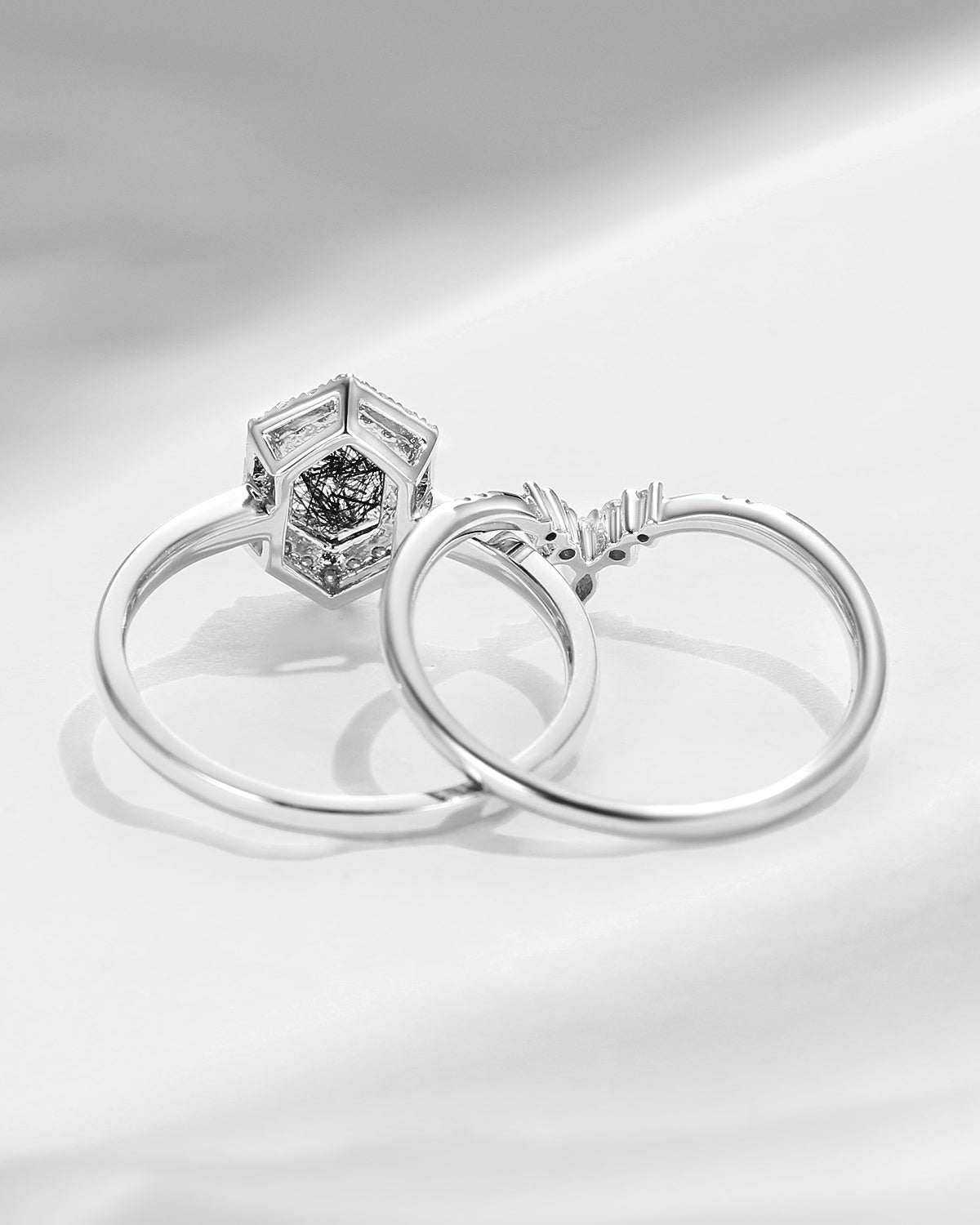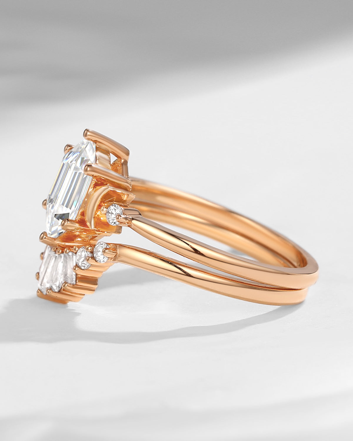 Pure Moon | Fancy Long Hexagon Moissanite Engagement Ring Set 2pcs