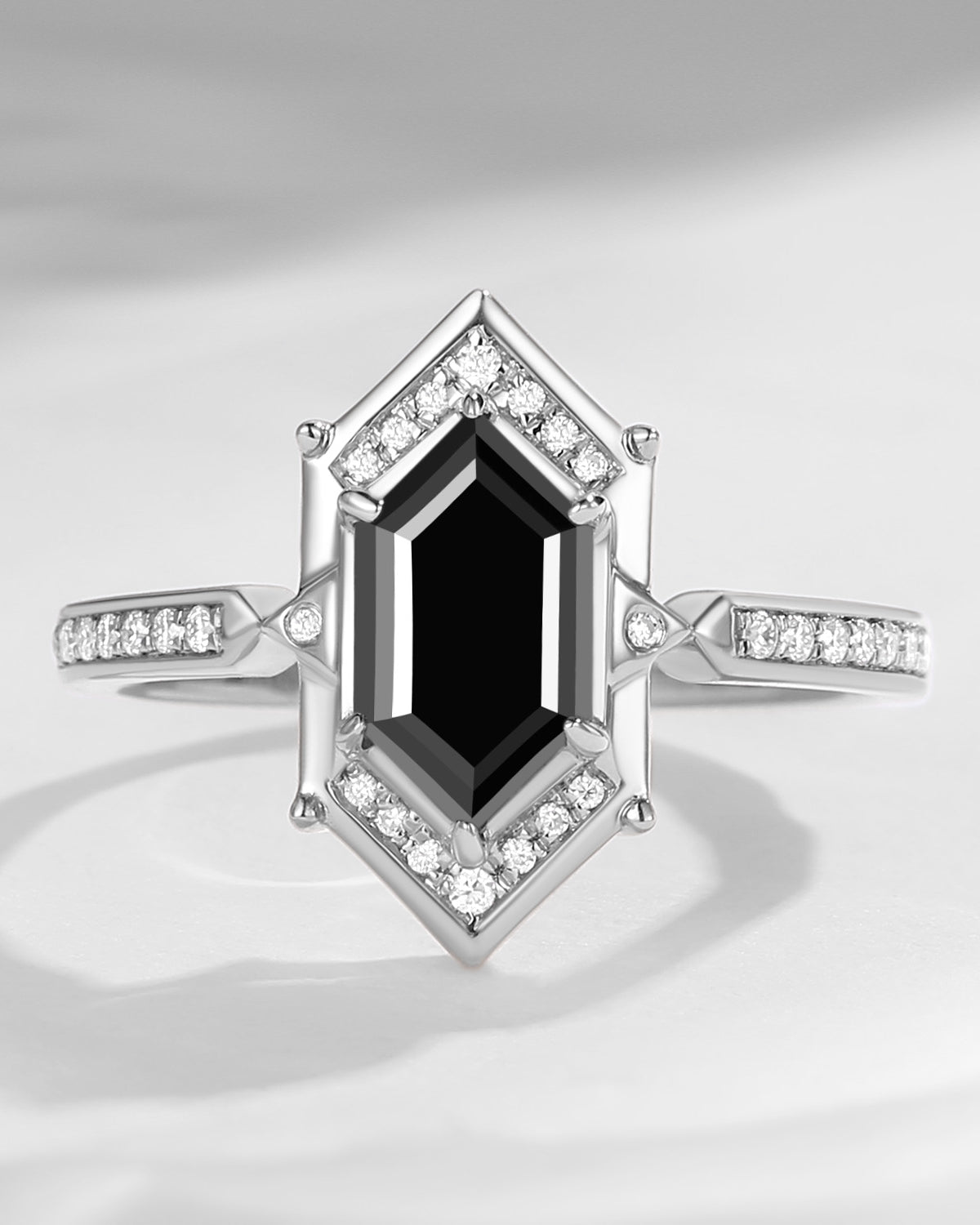 Long Hexagon Black Moissanite Vintage Engagement Ring