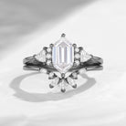 Classic Cluster Long Hexagon Cut Moissanite Engagement Ring Set 2pcs