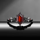 Gothic Long Hexagon Garnet 'Thorns & Roses' Cluster Black Gold Engagement Ring