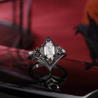 Gothic Style Long Hexagon Cut Moissanite Crow Inspired 'Caged Bird' Engagement Ring Halloween Bridal Sets 2pcs