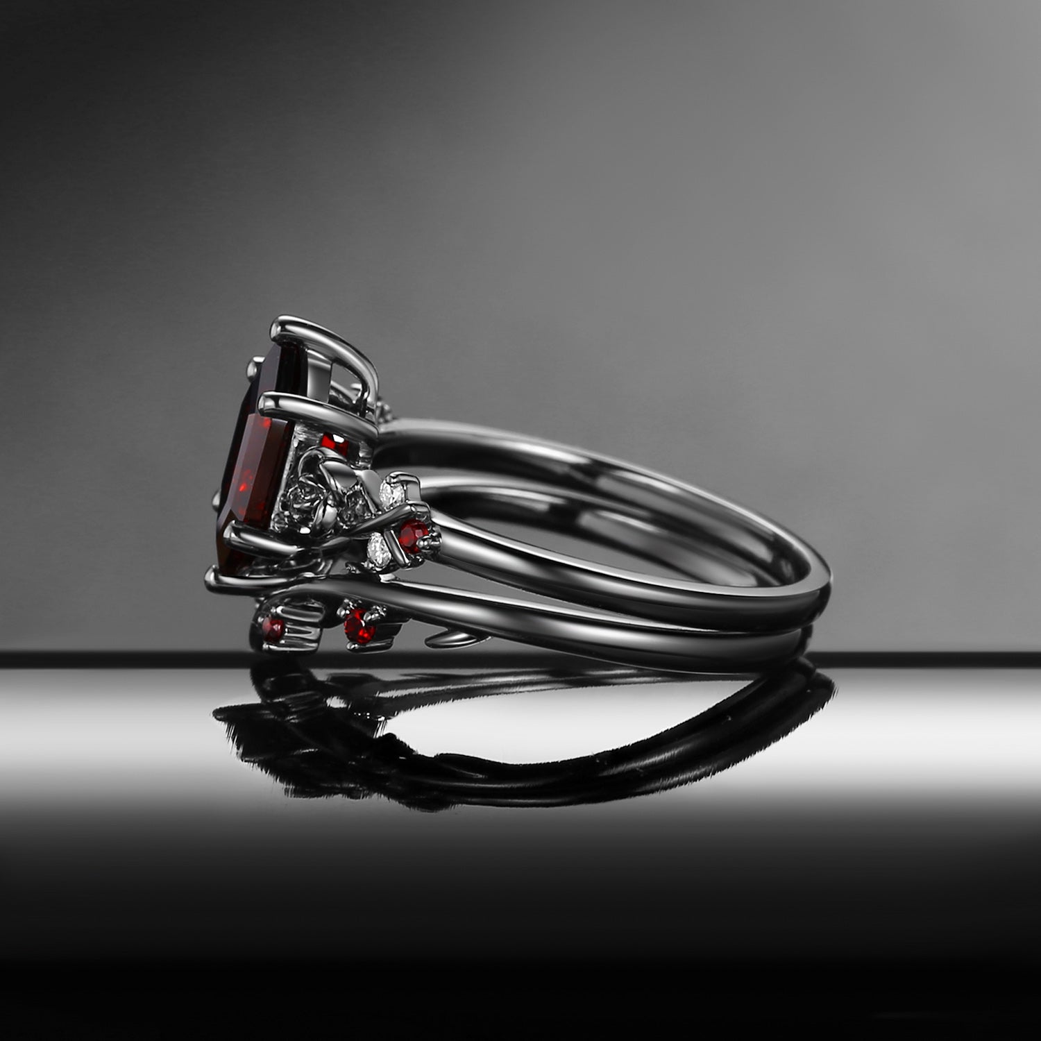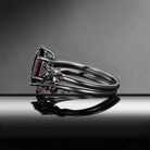 Gothic Style Nature Inspired 'Thorns & Roses' Long Hexagon Garnet Engagement Ring Set 2pcs
