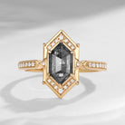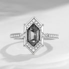 ⟢ Center Stone: Natural Salt and Pepper Diamond, fancy hexagon shape