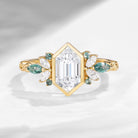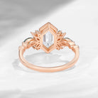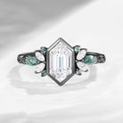 Nature Inspired Long Hexagon Bezel Moissanite Butterfly Engagement Ring