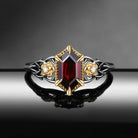 Nature Inspired Long Hexagon Garnet 'Thorns & Roses' Two-Toned Engagement Ring
