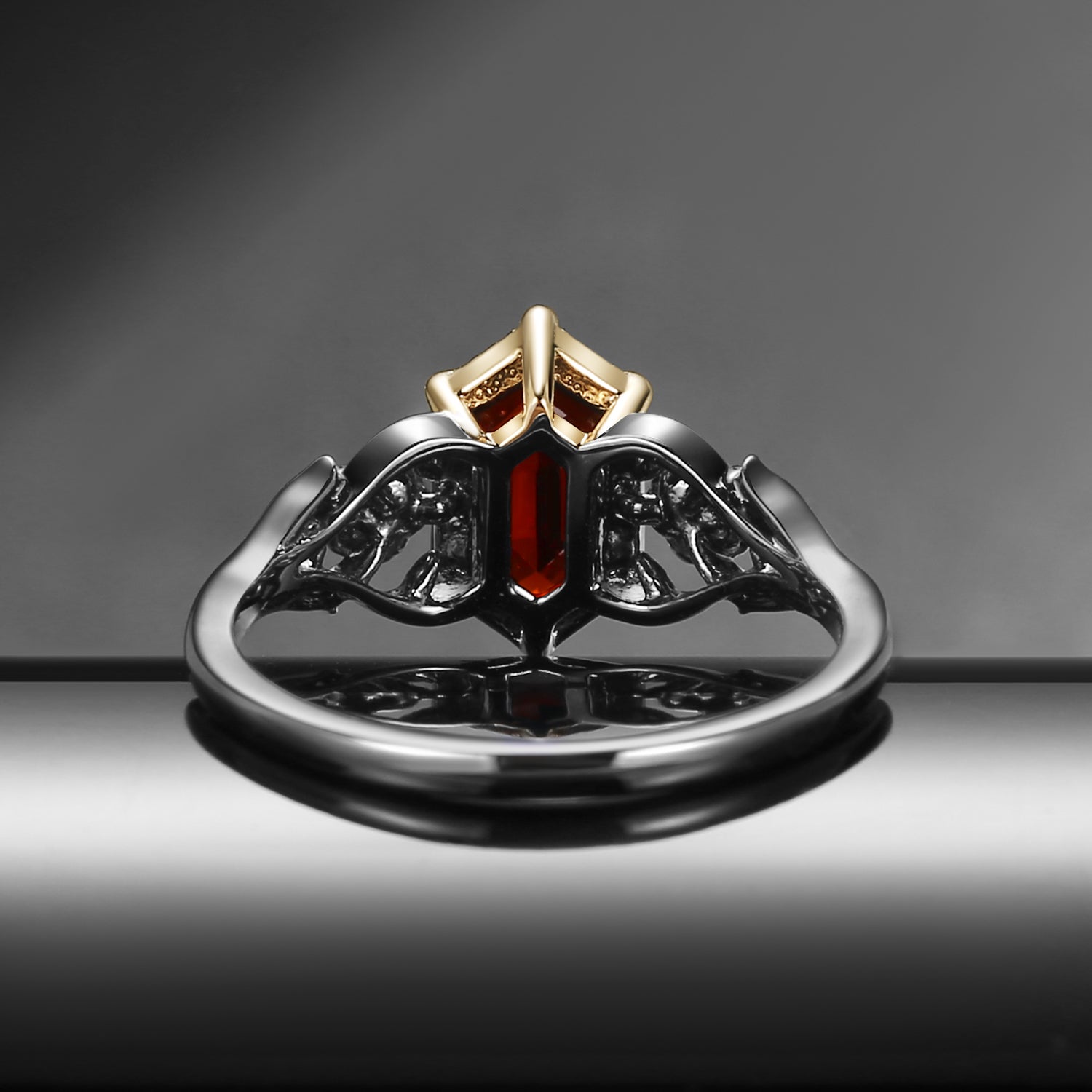 Nature Inspired Long Hexagon Garnet 'Thorns & Roses' Two-Tone Engagement Ring