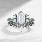 Nature Inspired Long Hexagon Moissanite Butterfly Cluster Engagement Ring Set 2pcs