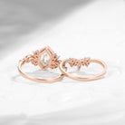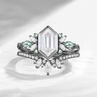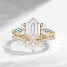 Nature Inspired Long Hexagon Moissanite Butterfly Engagement Ring 2pcs
