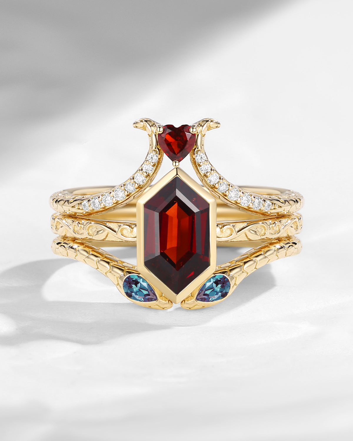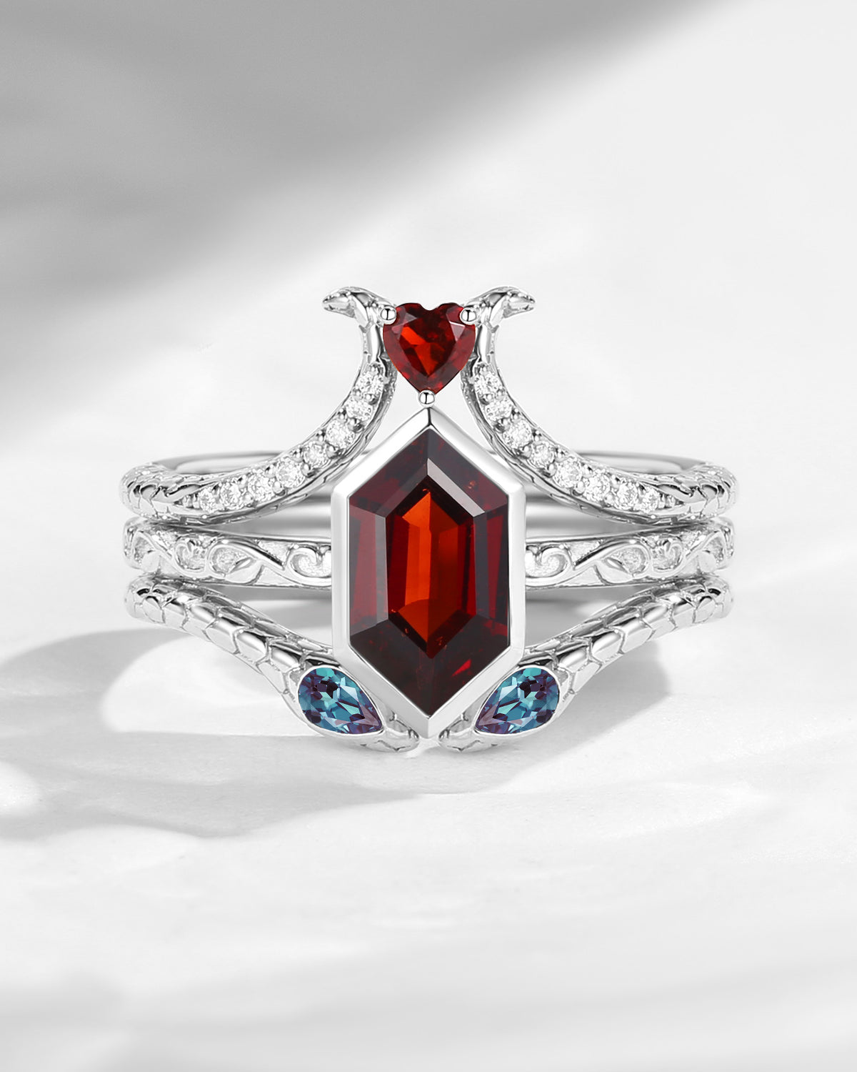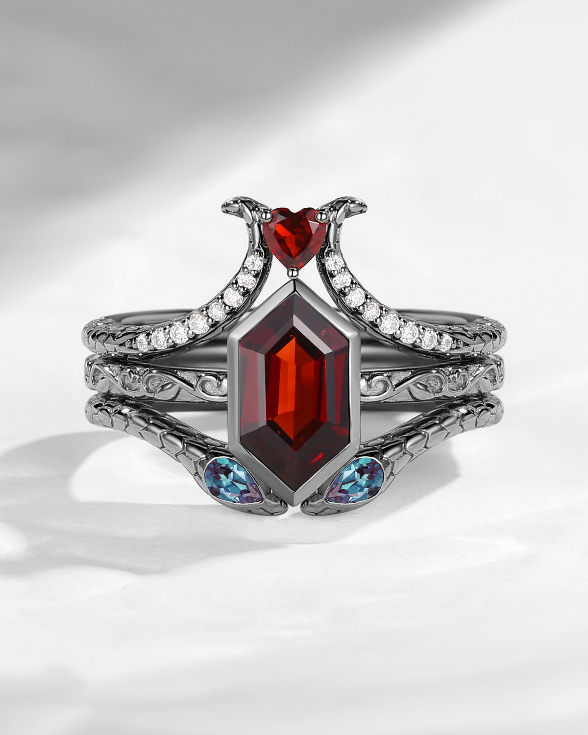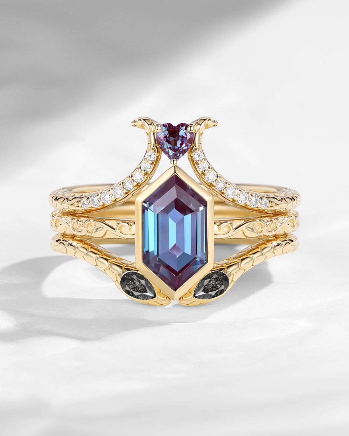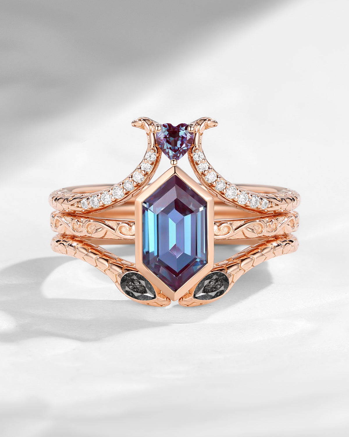 Crescent Moon | Hexagon Salt And Pepper Diamond Engagement Ring 2pcs