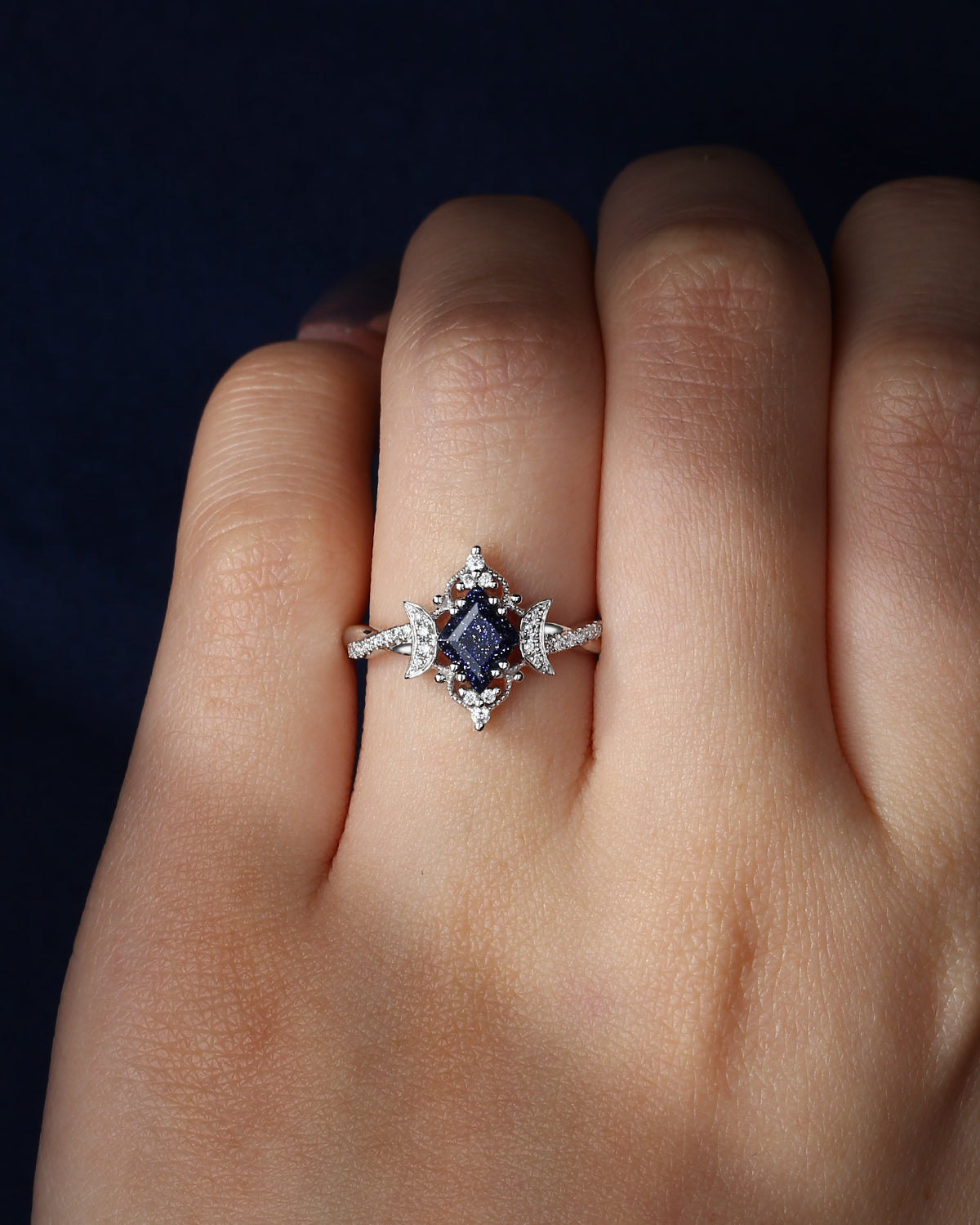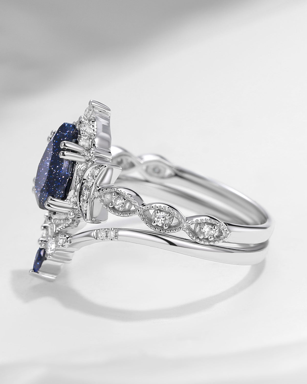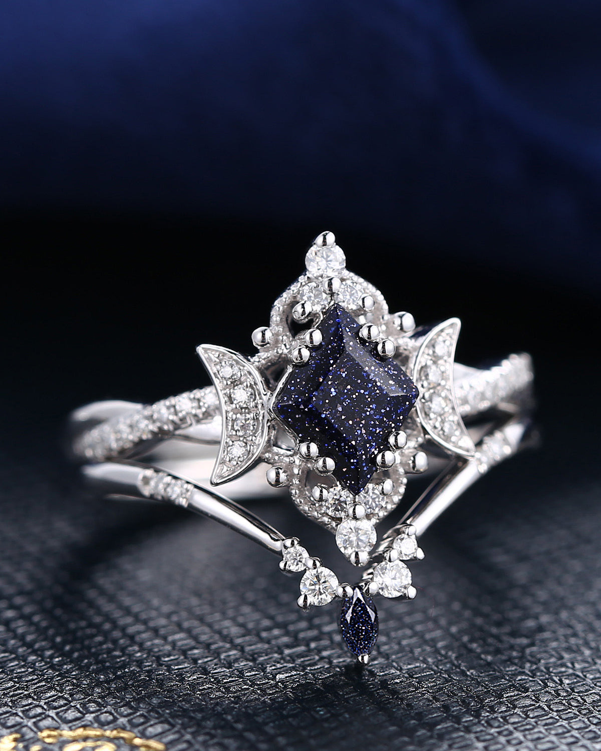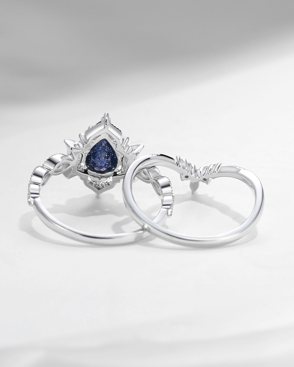 Crescent Moon | Pear Cut Blue Sandstone 'Ultra Galaxy' Engagement Ring Set 2pcs
