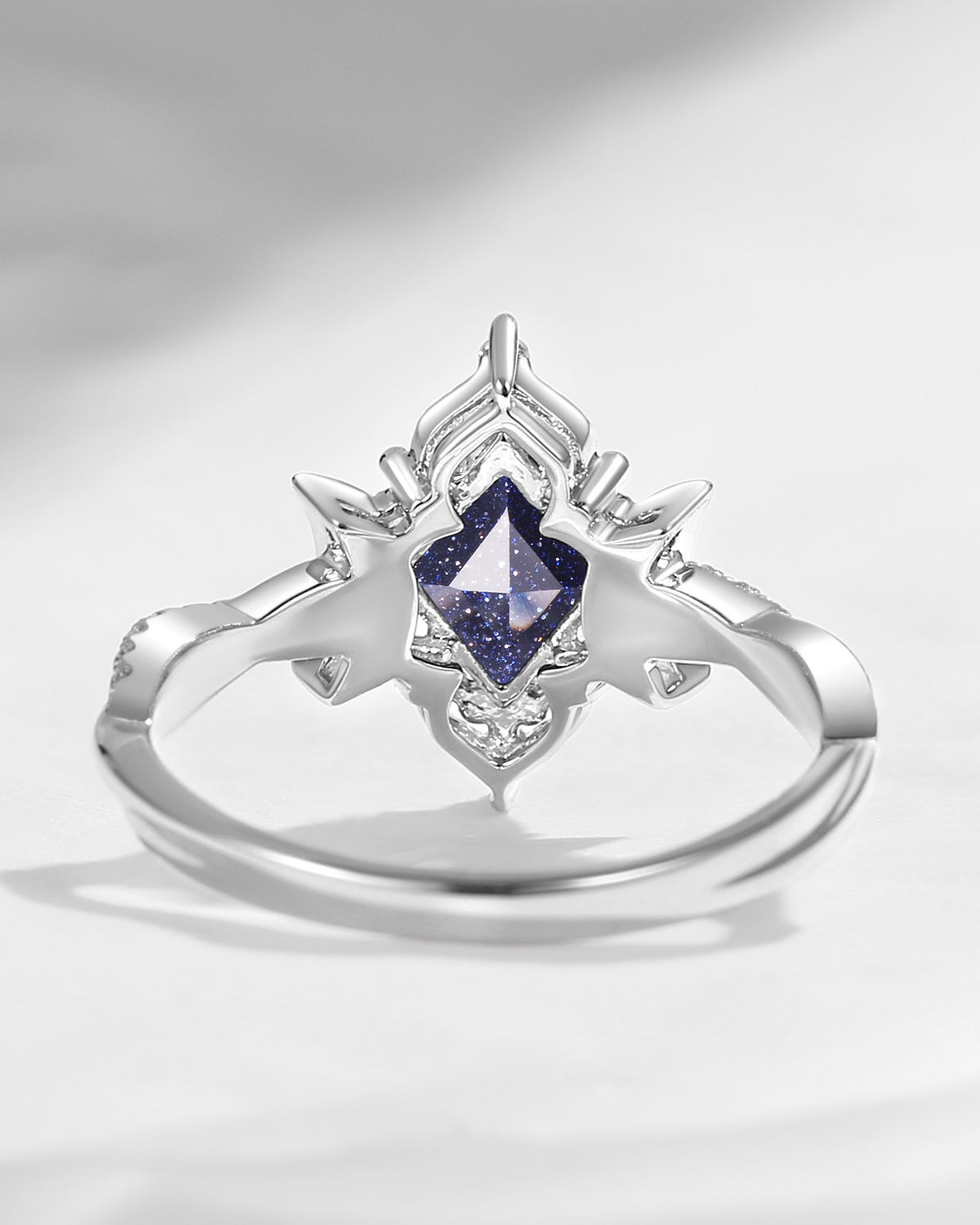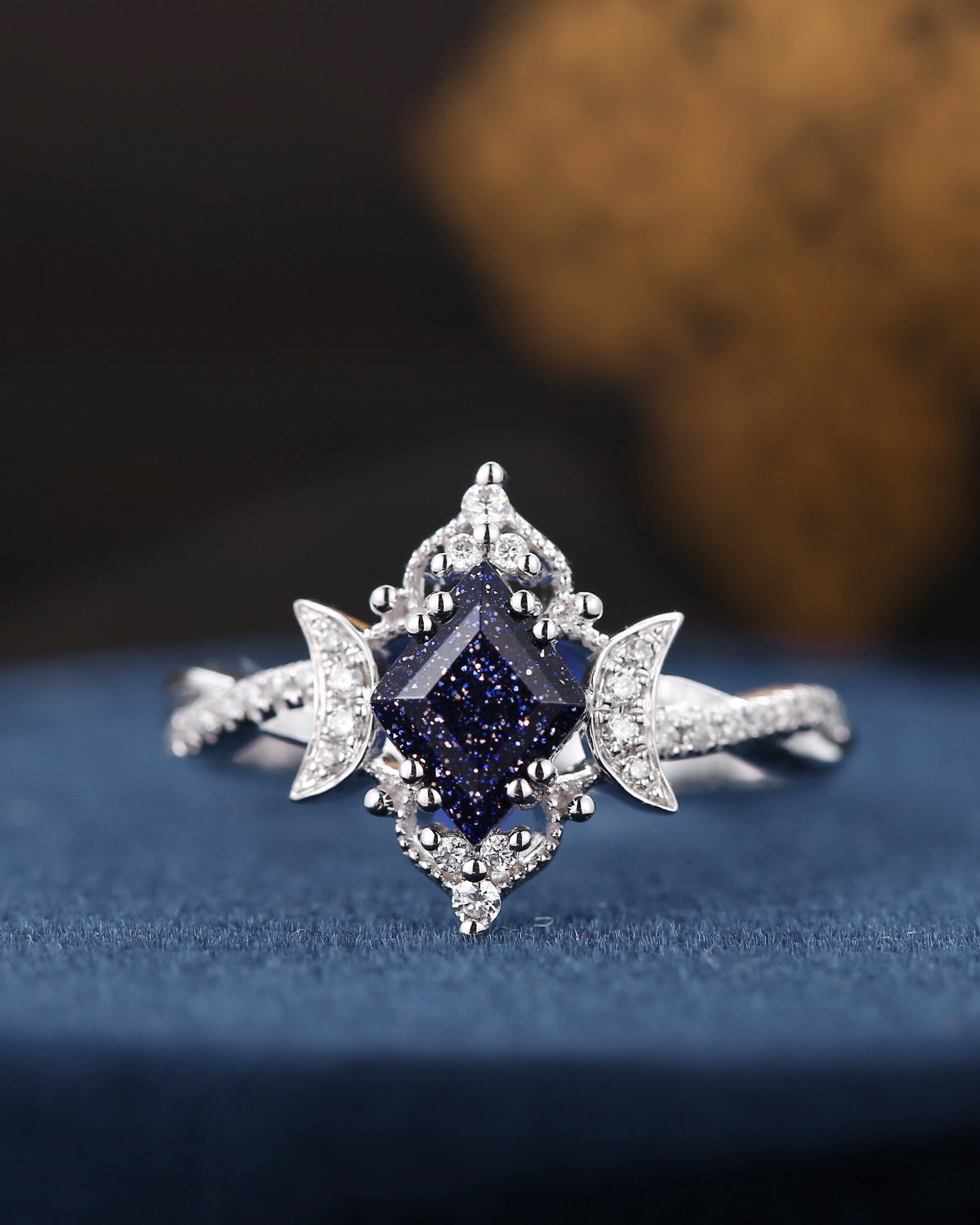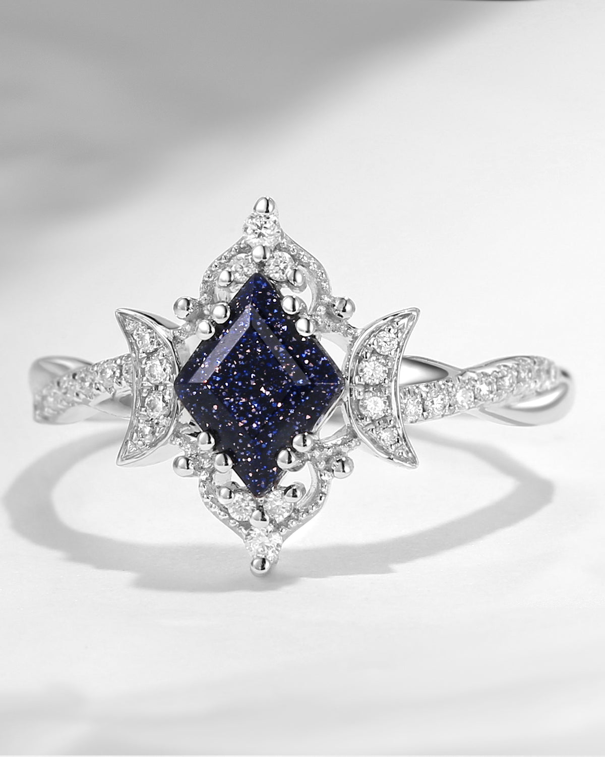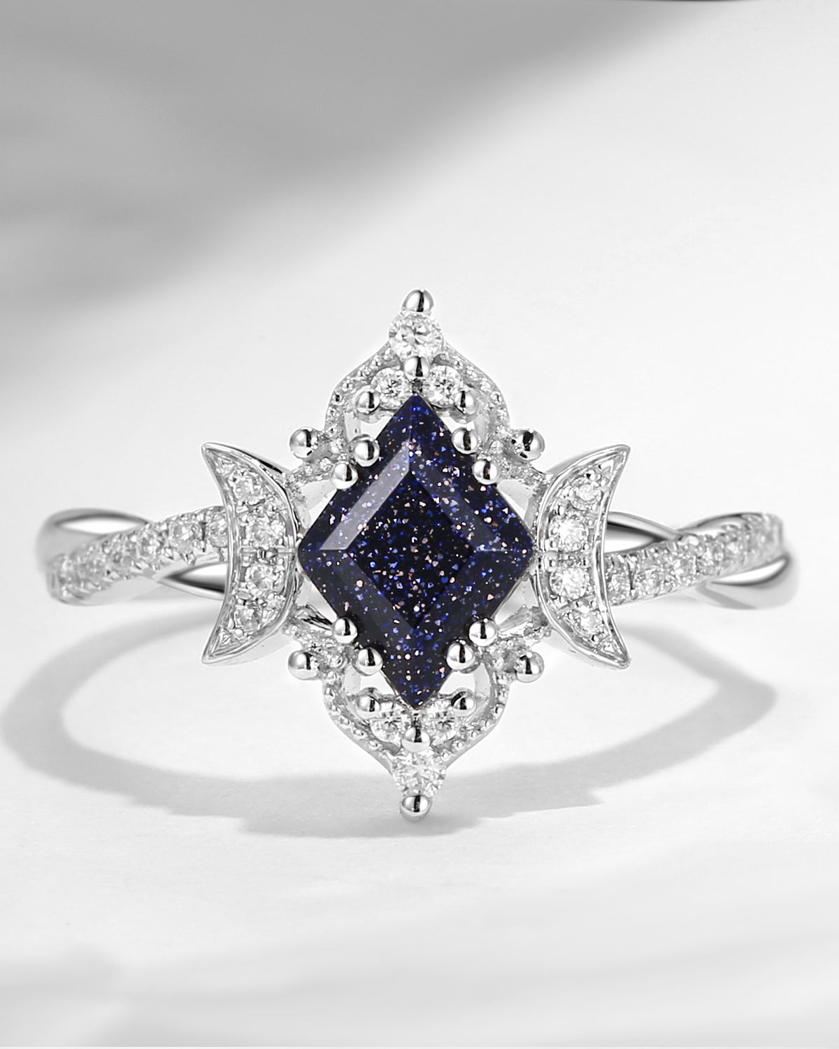 Crescent Moon | Unique Kite Cut Infinity Blue Sandstone Ring - Twisted Galaxy