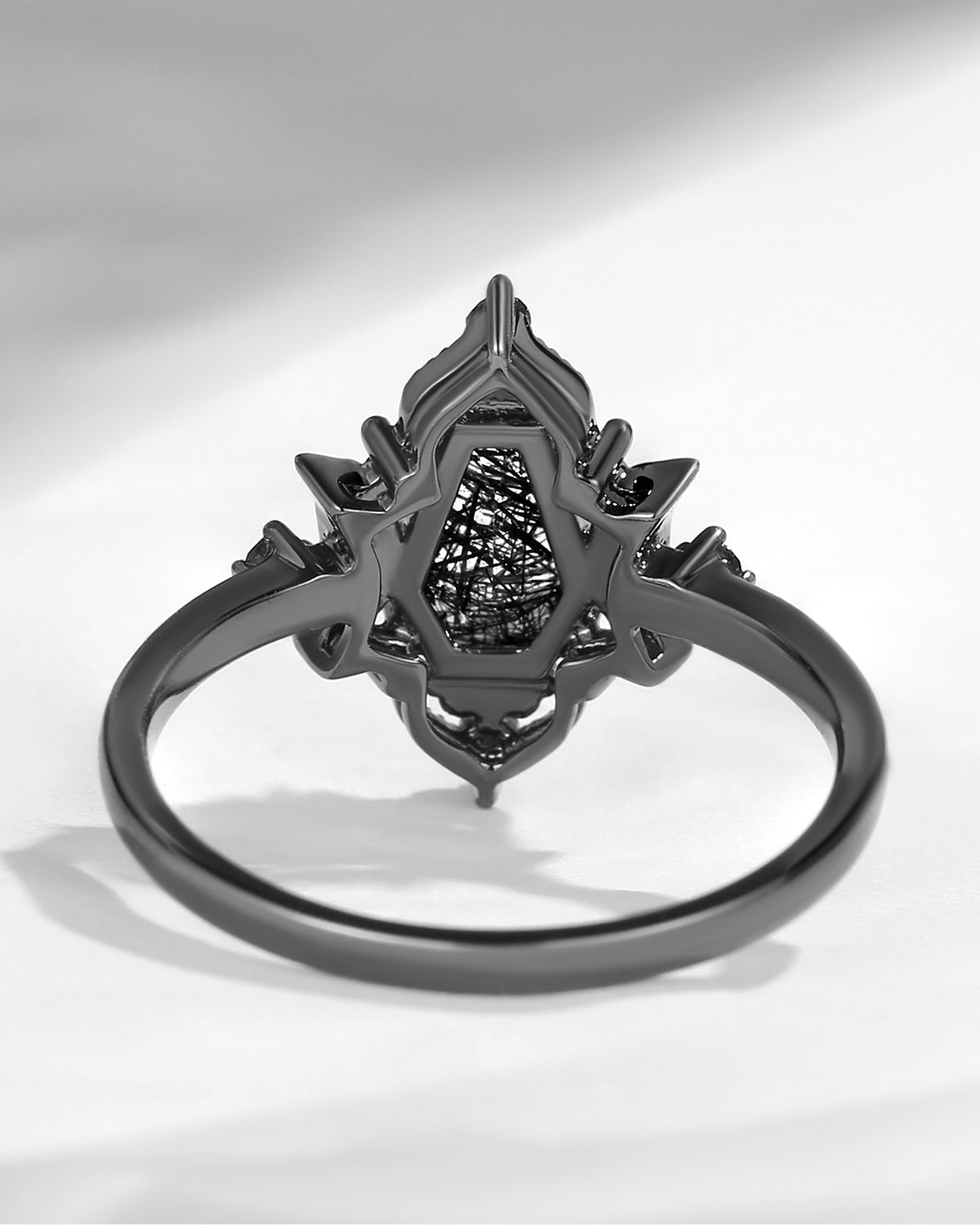 Crescent Moon | Coffin Cut Black Rutilated Quartz 'Black Statement' Ring