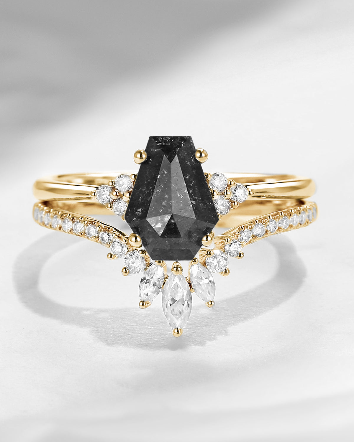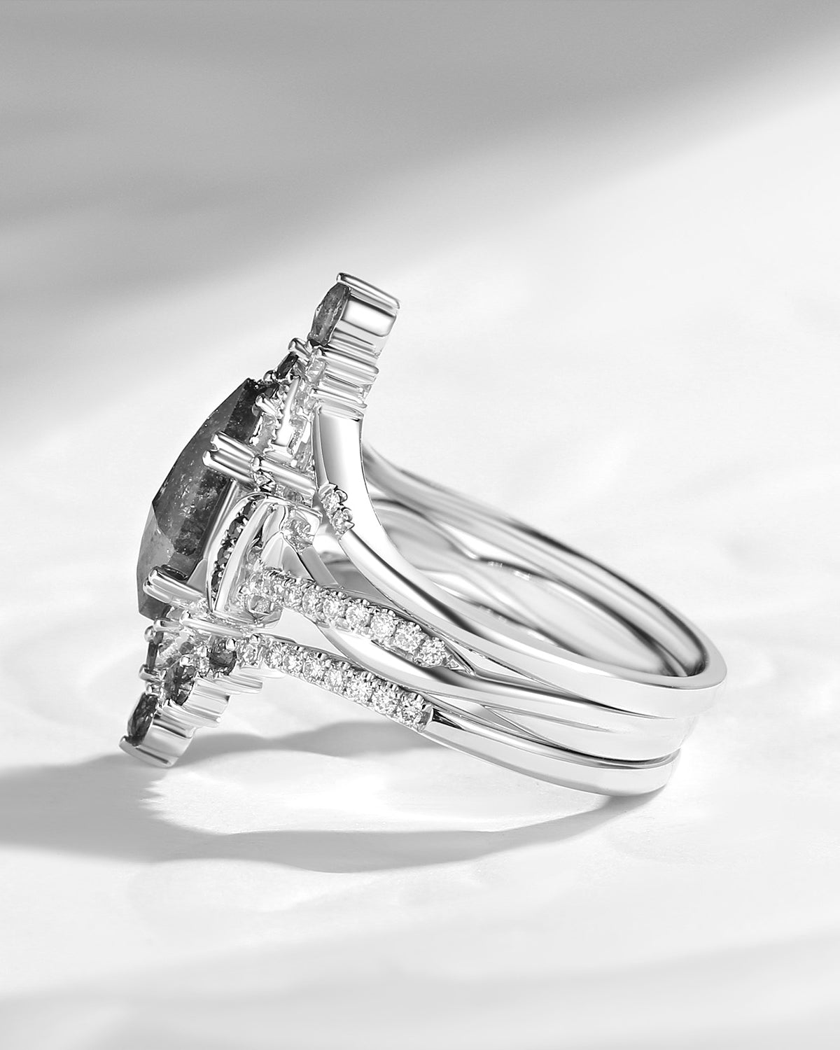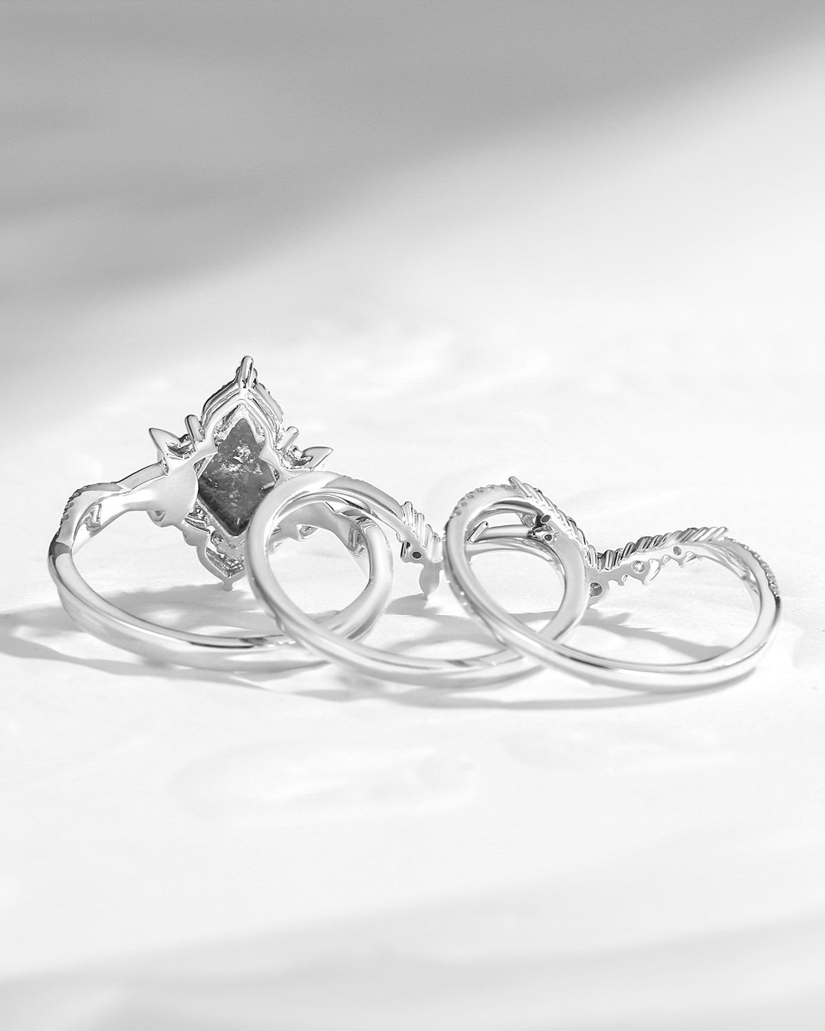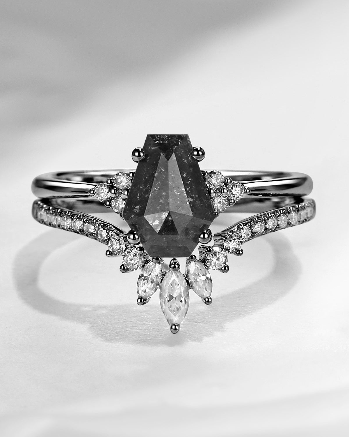 Crescent Moon | Kite Cut Salt and Pepper Diamond 'Noir' Engagement Ring Set 3pcs