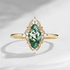 18K Marquise Vintage Inspired Moss Agate Engagement Ring