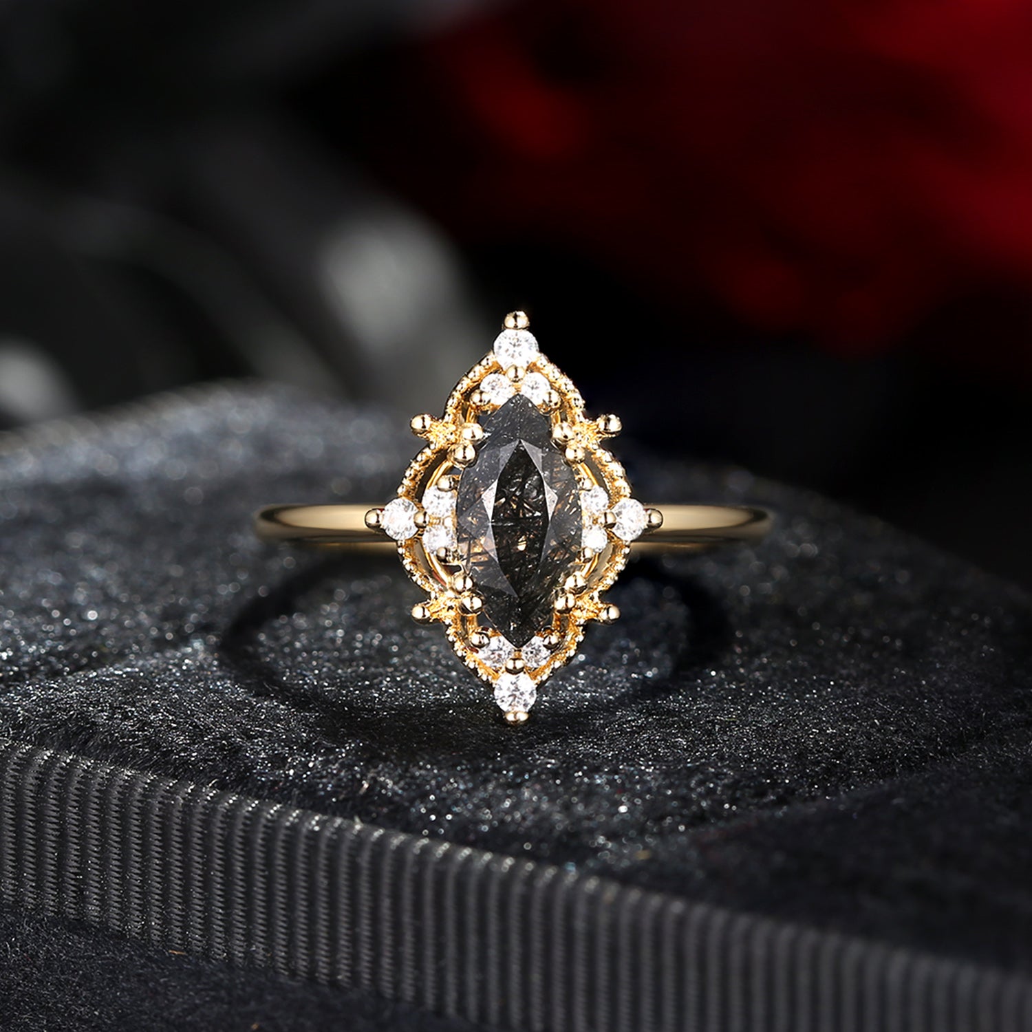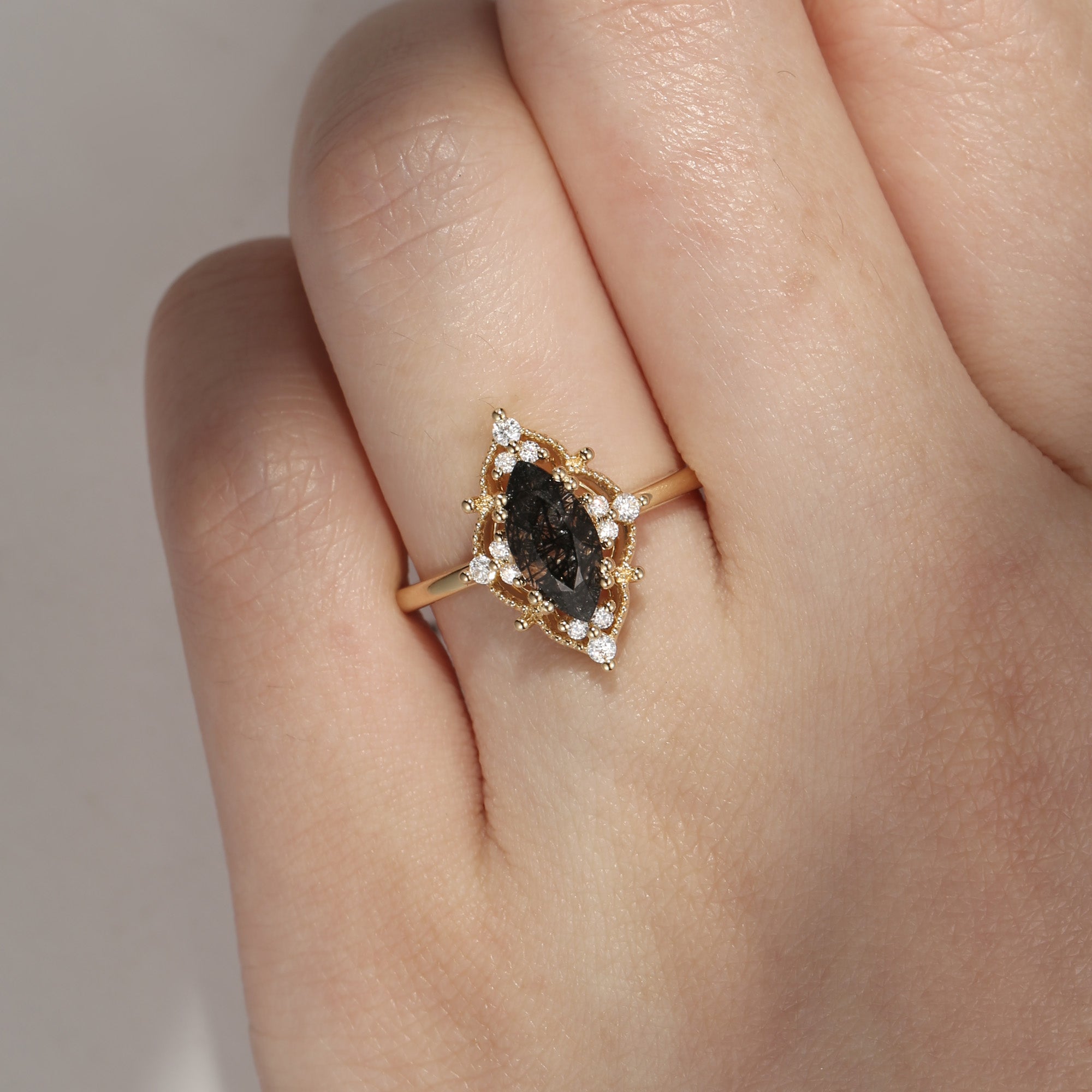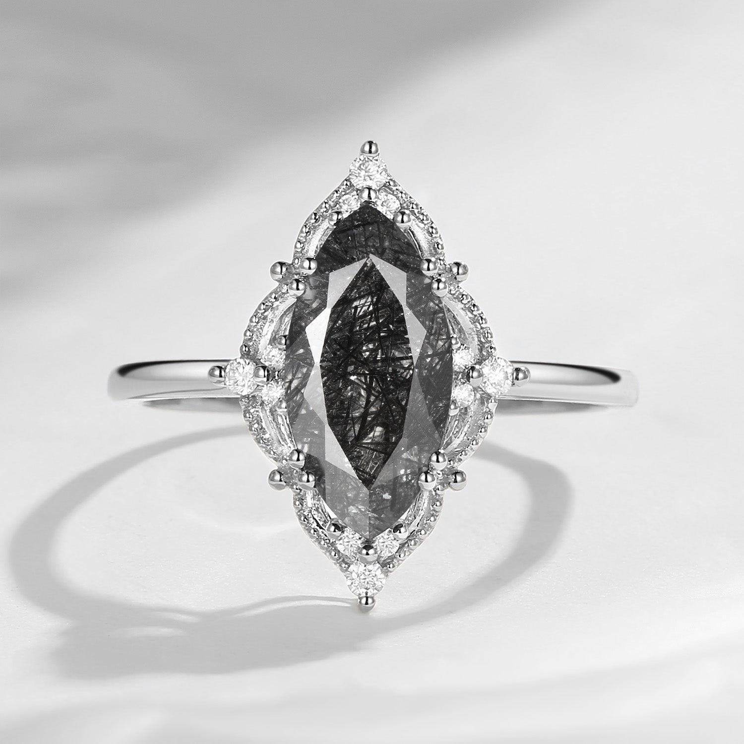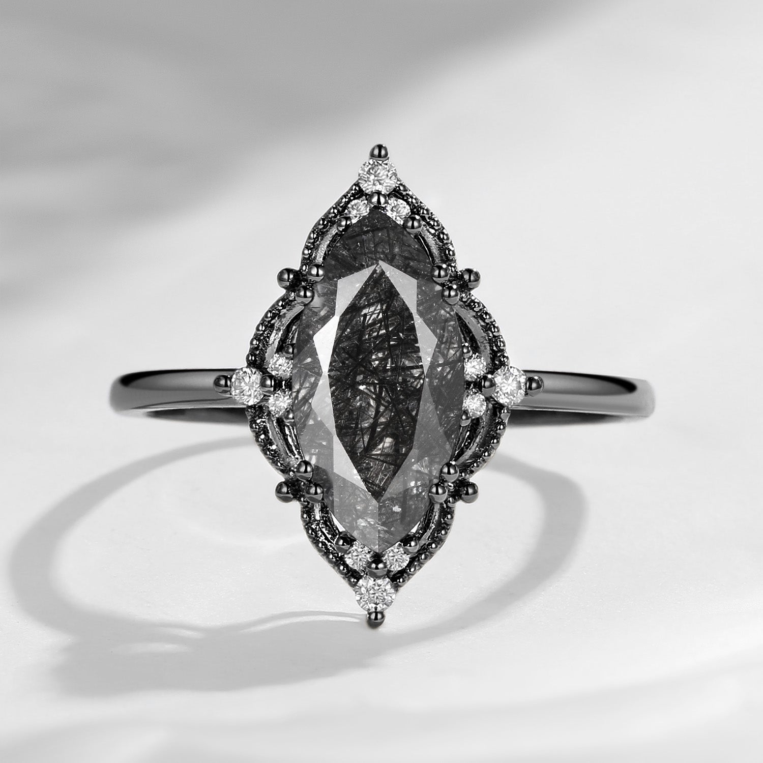 2.5ct 18K Marquise Vintage Inspired Black Rutilated Quartz Engagement Ring