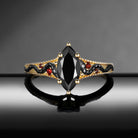 Gothic Marquise Cut Black Moissanite 'Serpent's Embrace' Two-Toned Engagement Ring